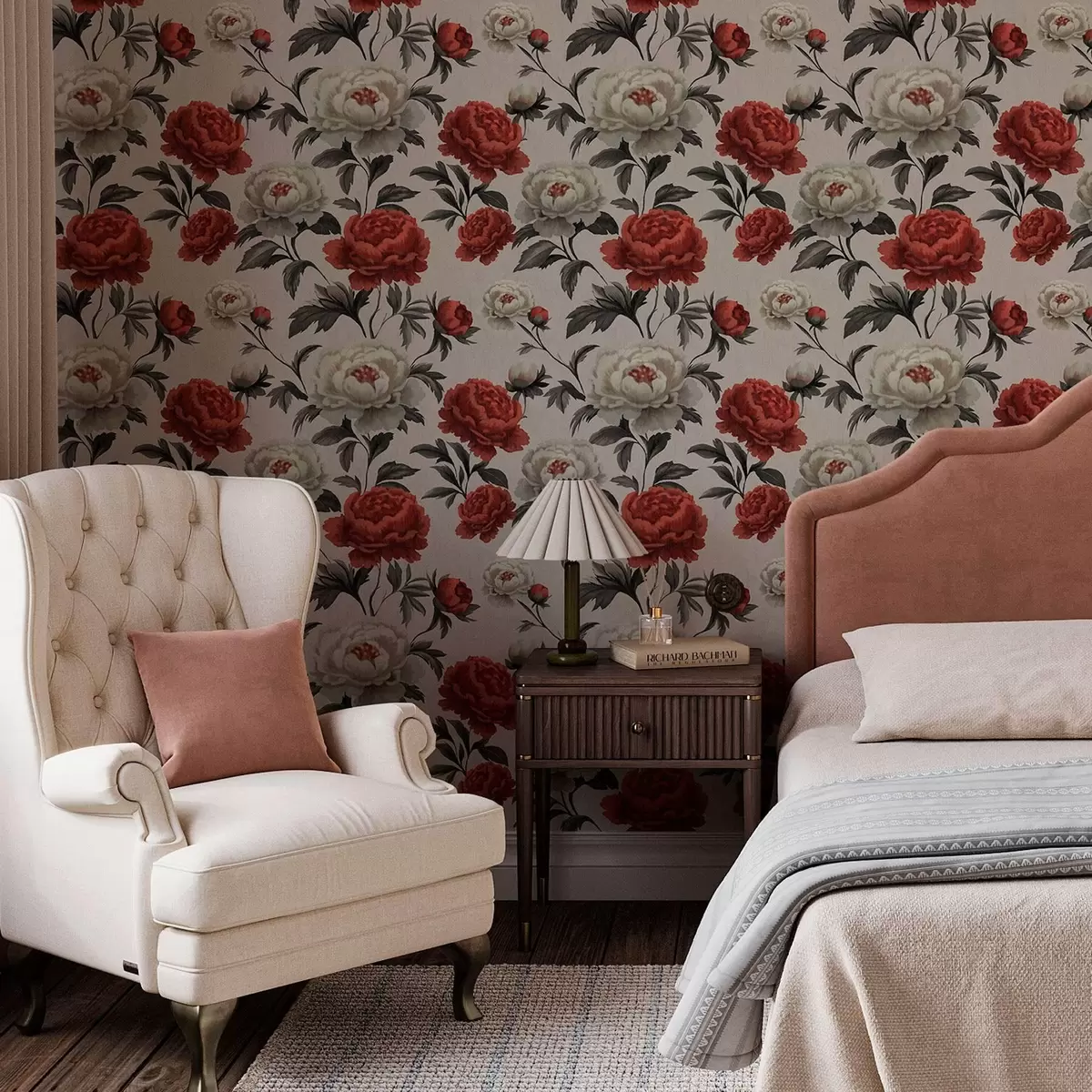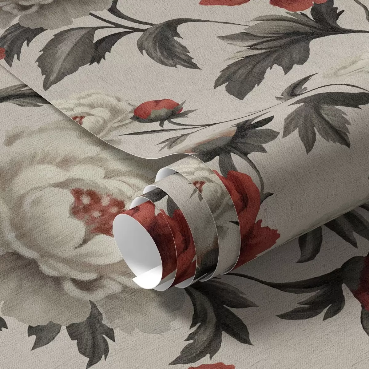 Carta da parati Peonie in stile retrò su sfondo beige Nr. a00107
