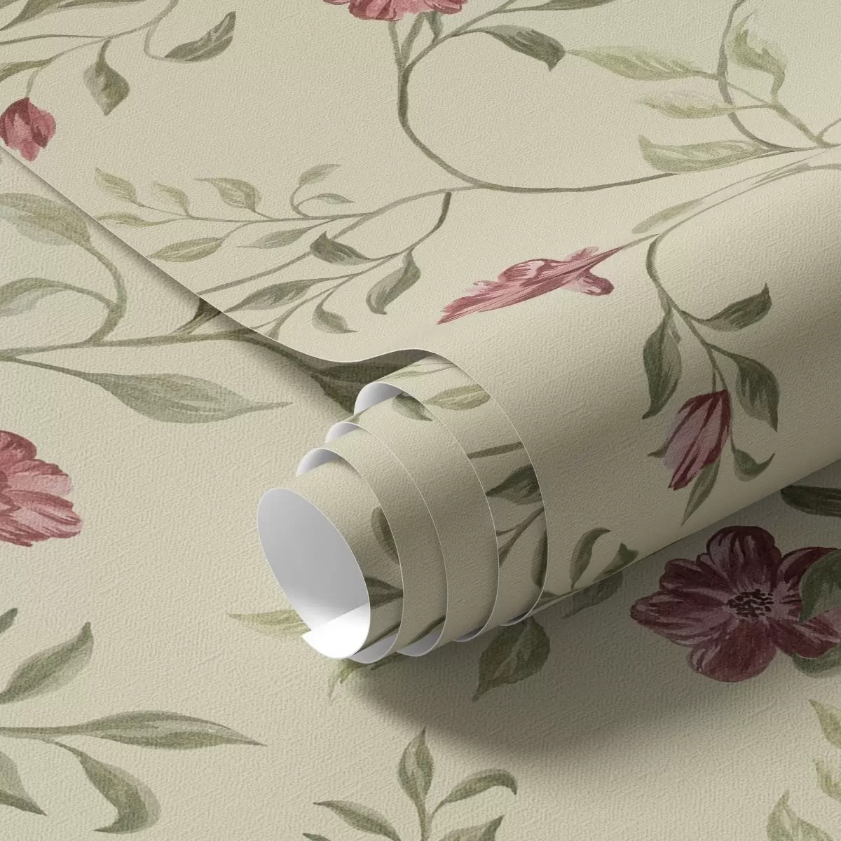 Carta da parati Fiori e boccioli rossi su sfondo chiaro Nr. a00114