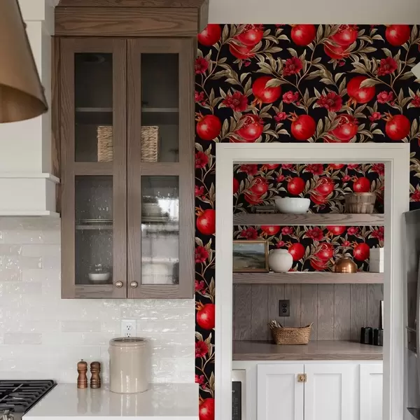 Carta da parati Melograni e fiori su sfondo scuro in stile mediterraneo Nr. a00115