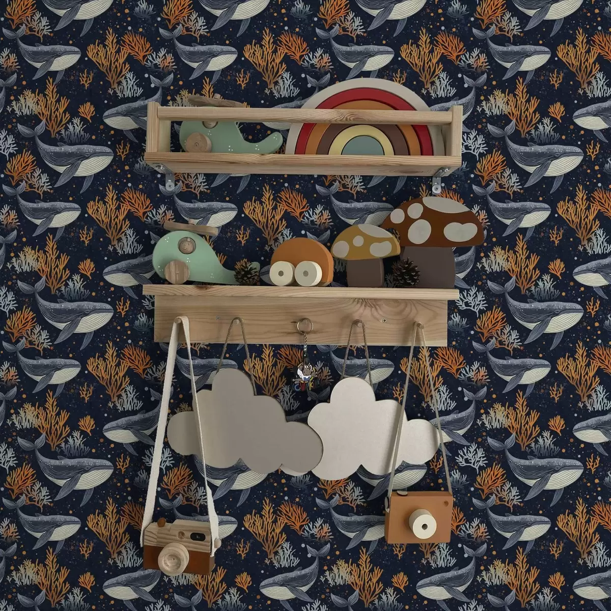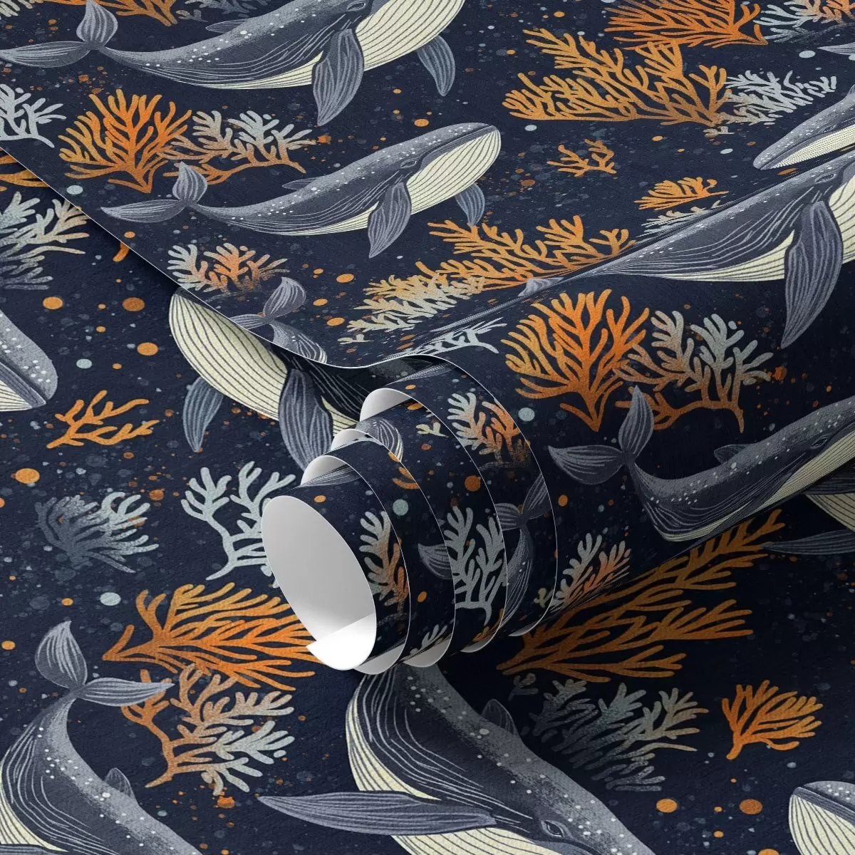 Carta da parati Balene marine e coralli su sfondo scuro Nr. a00116