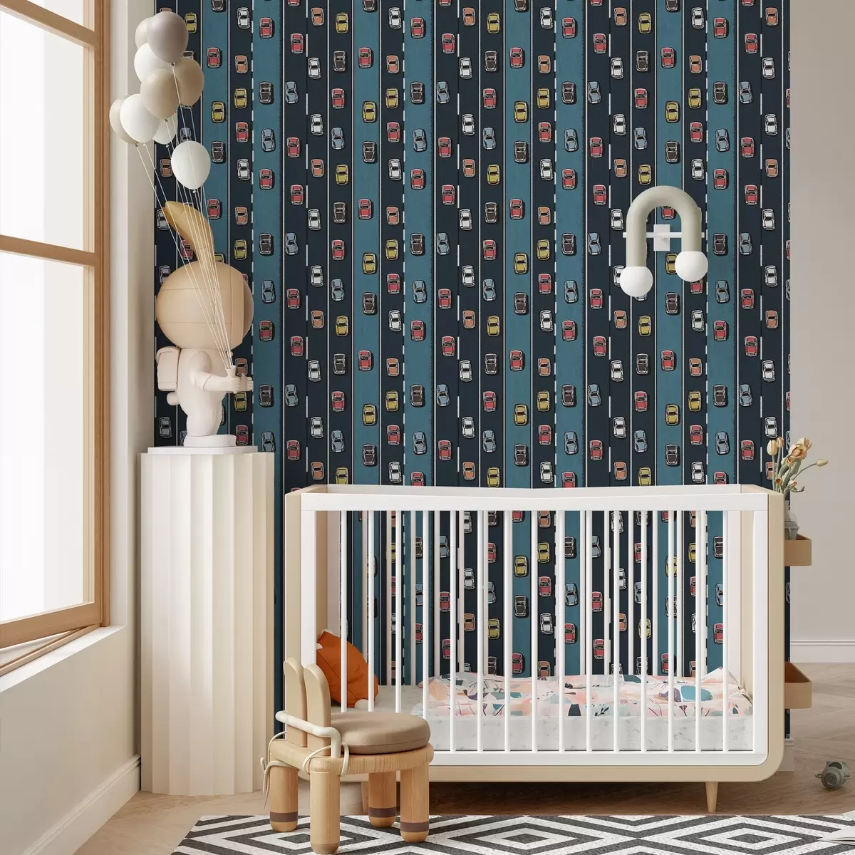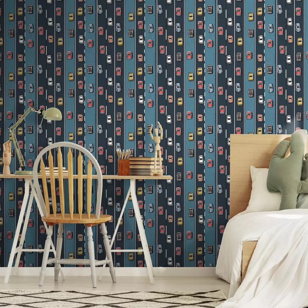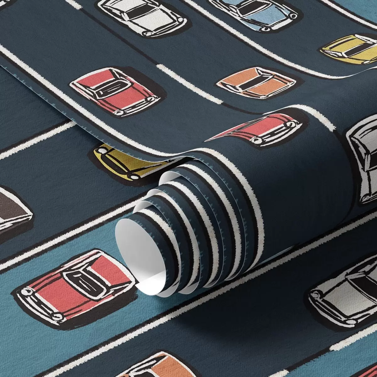 Carta da parati Auto retrò su strada blu navy in stile anni '60 Nr. a00118