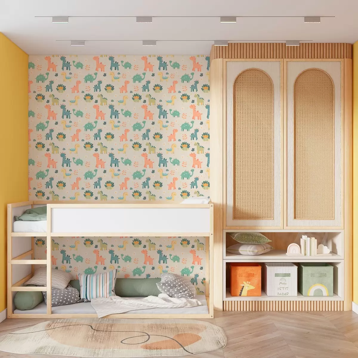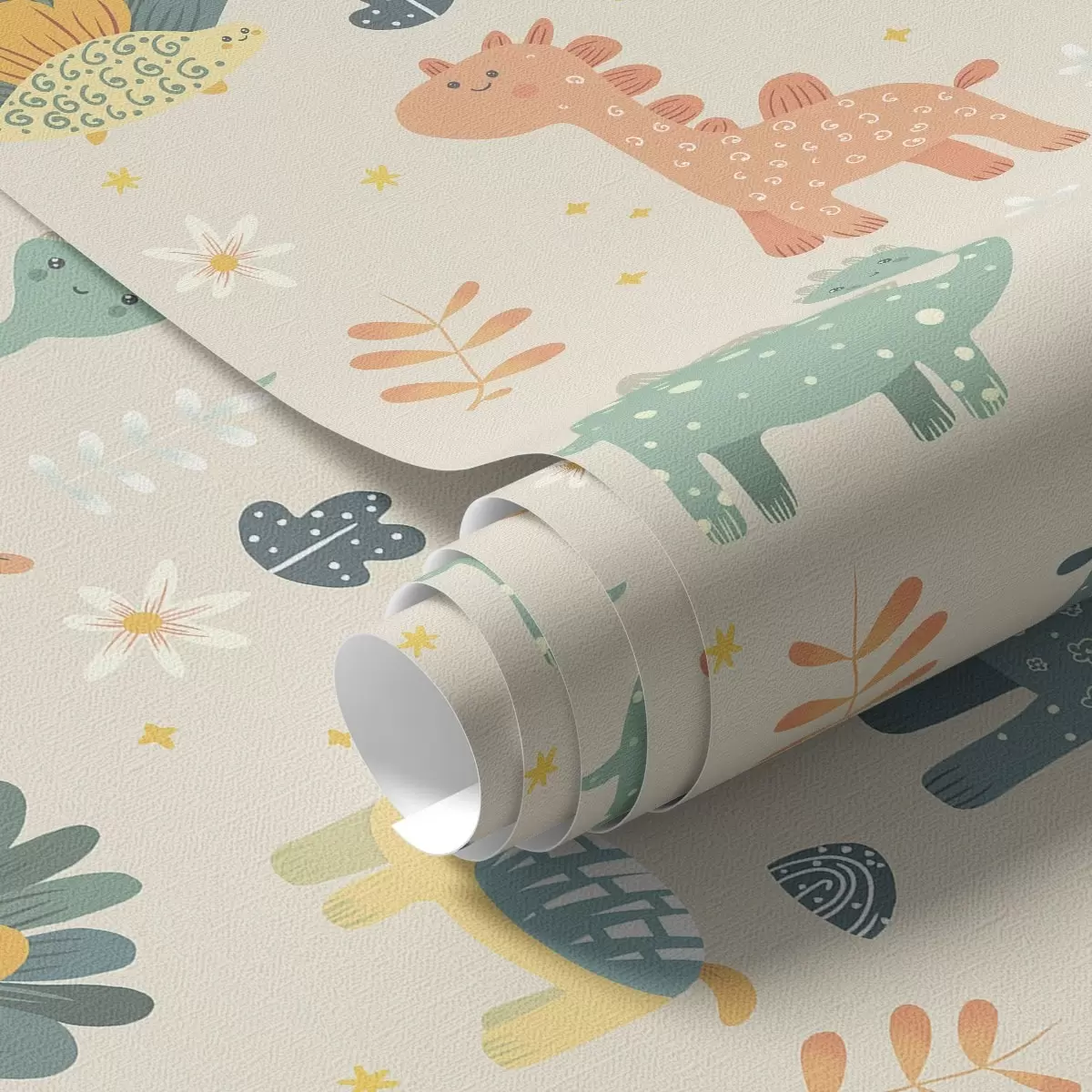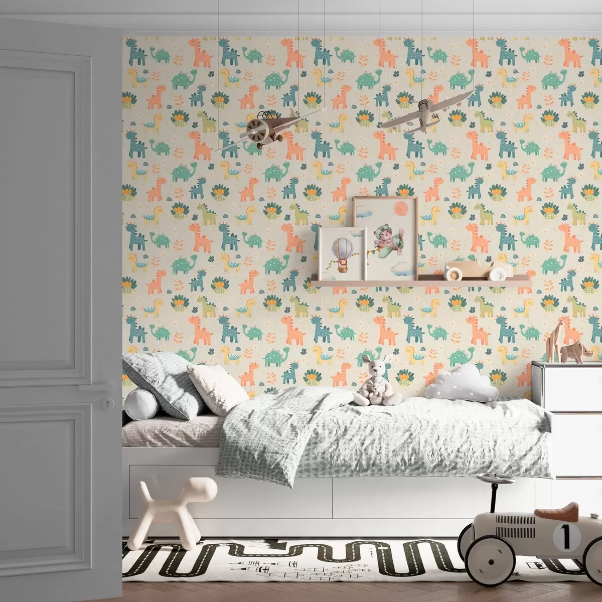 Carta da parati Dinosauri per bambini in colori pastello su sfondo chiaro Nr. a00125