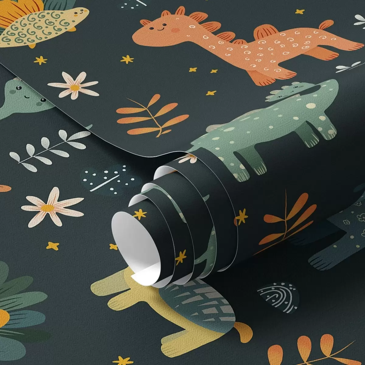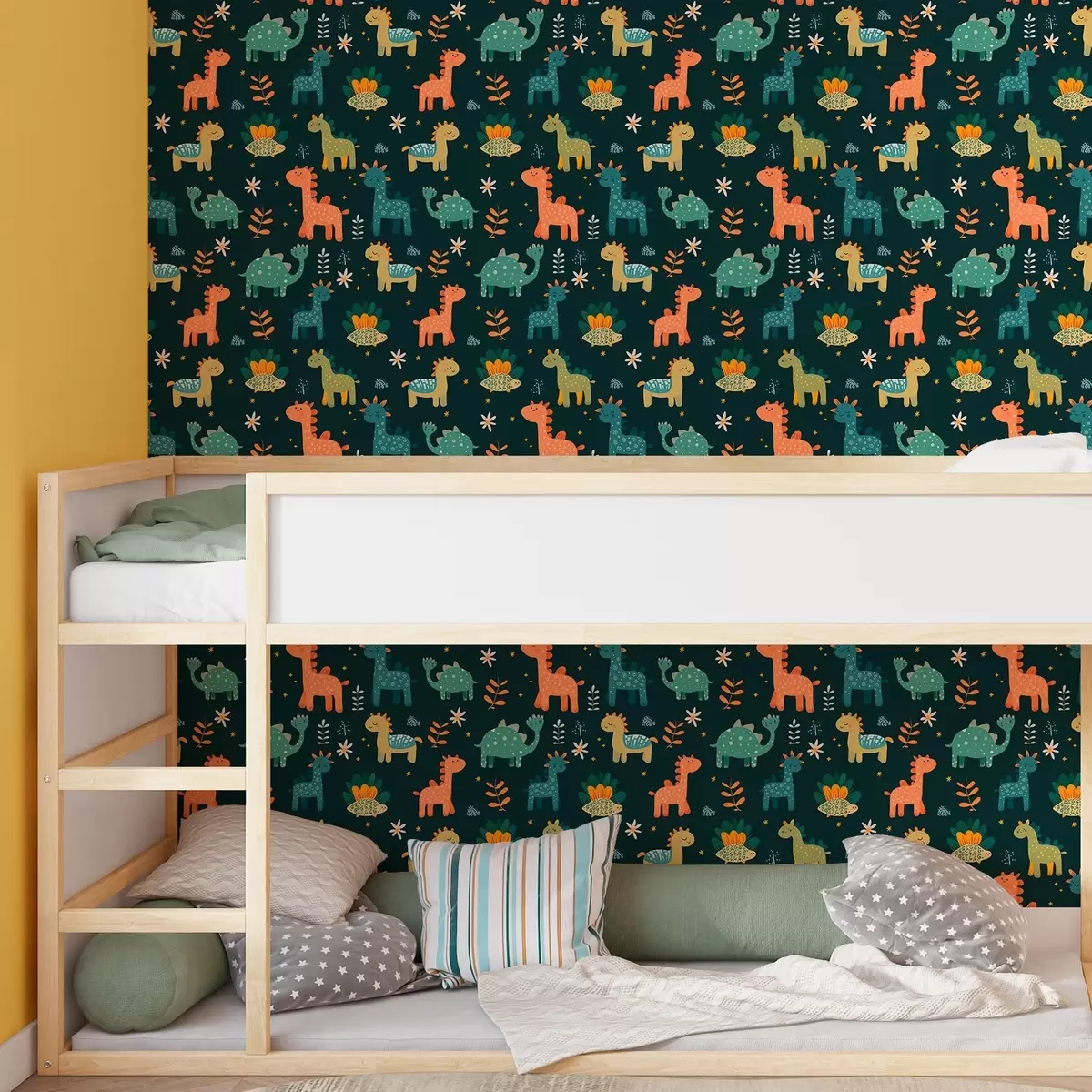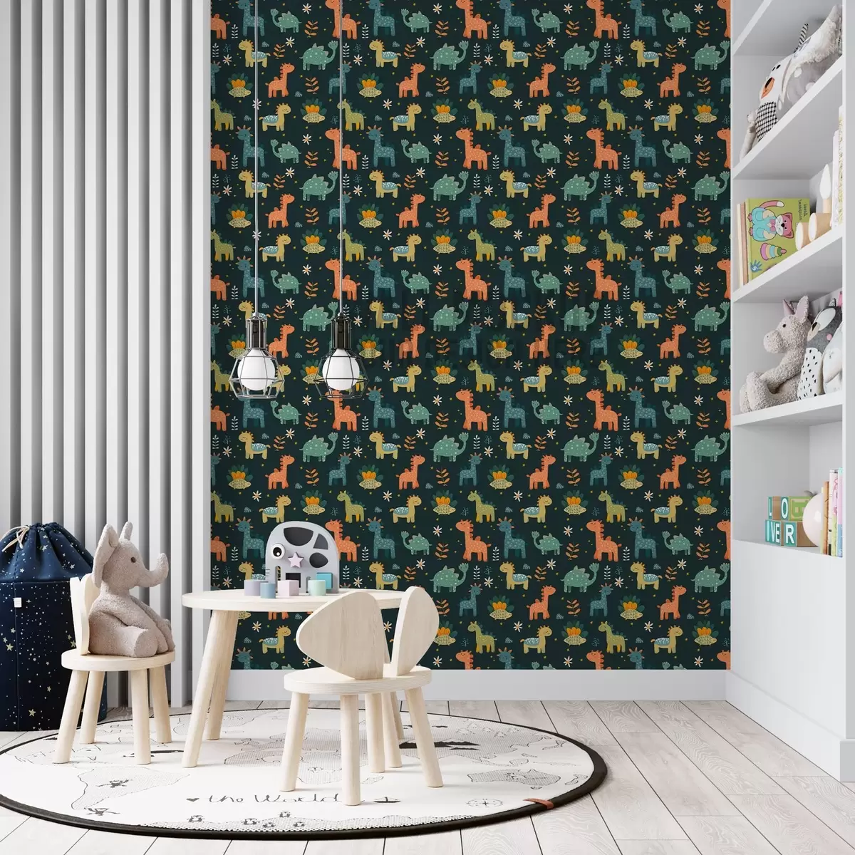Carta da parati Divertenti dinosauri in colori pastello su sfondo scuro Nr. a00125v2