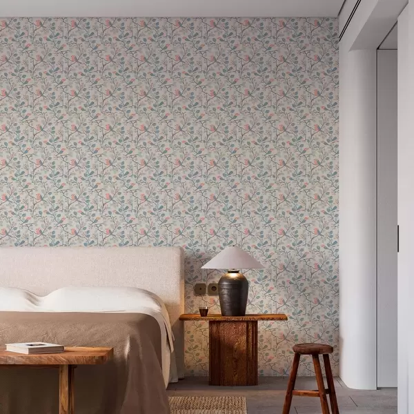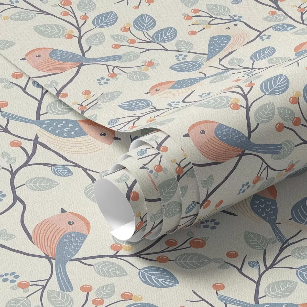 Carta da parati Uccelli e ramoscelli pastello su sfondo chiaro Nr. a00128