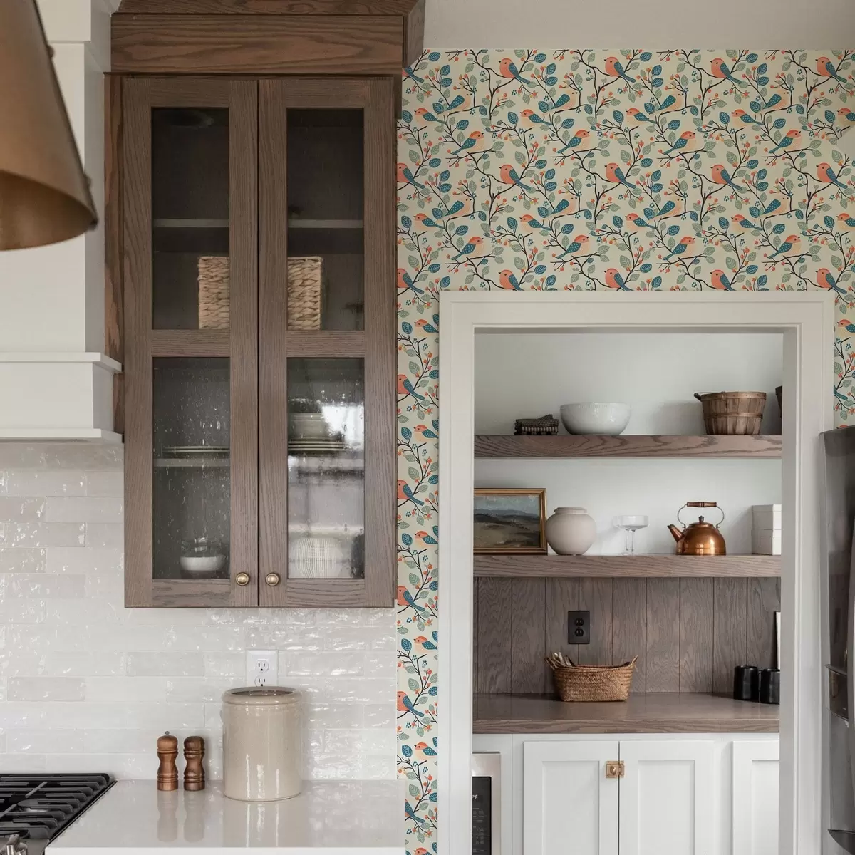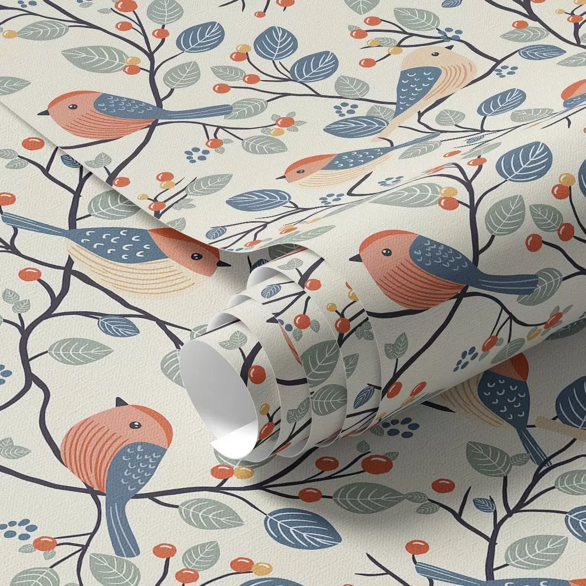 Carta da parati Uccelli sui rami e bacche dai colori caldi Nr. a00128v1