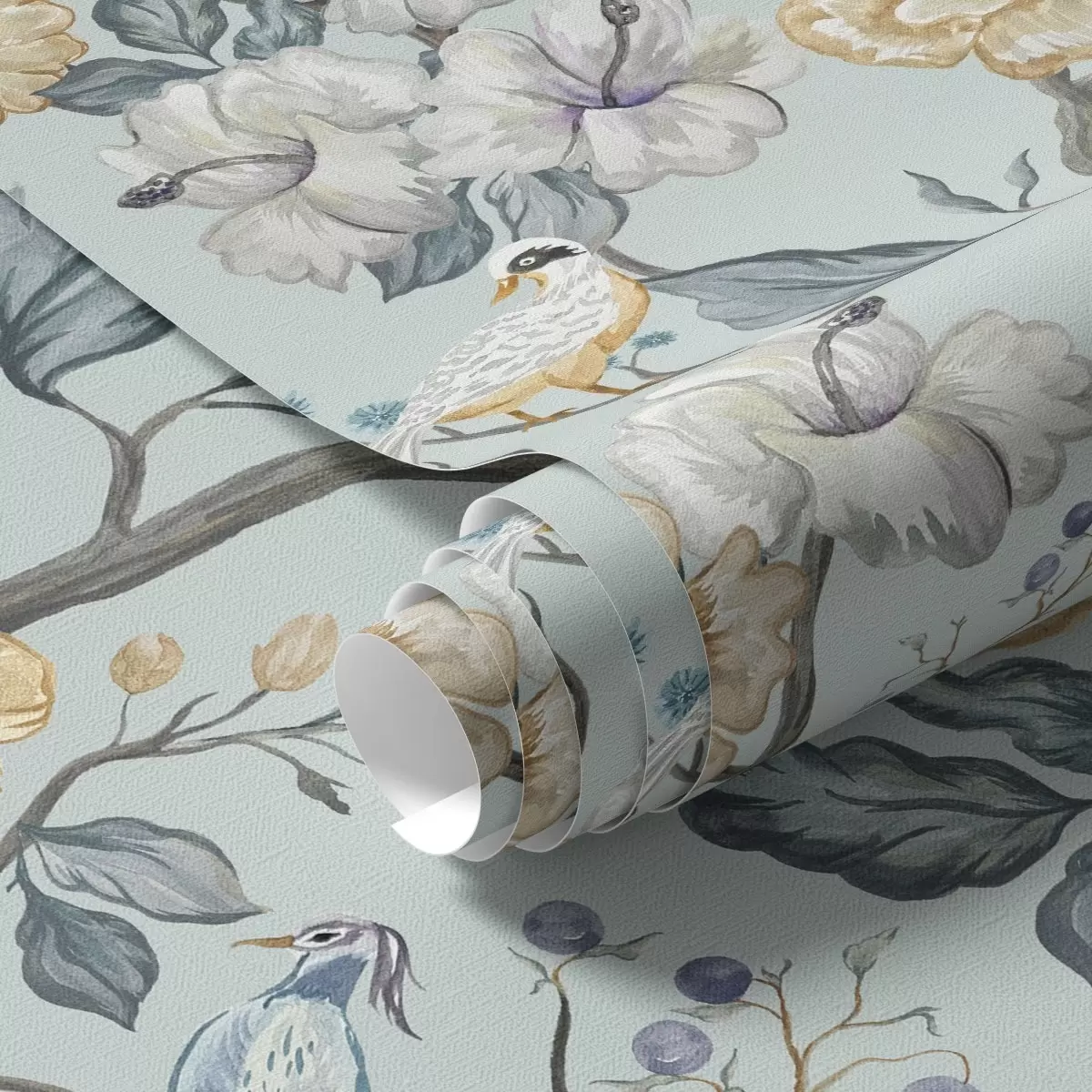 Carta da parati Fiori e uccelli su sfondo blu Nr. a00134