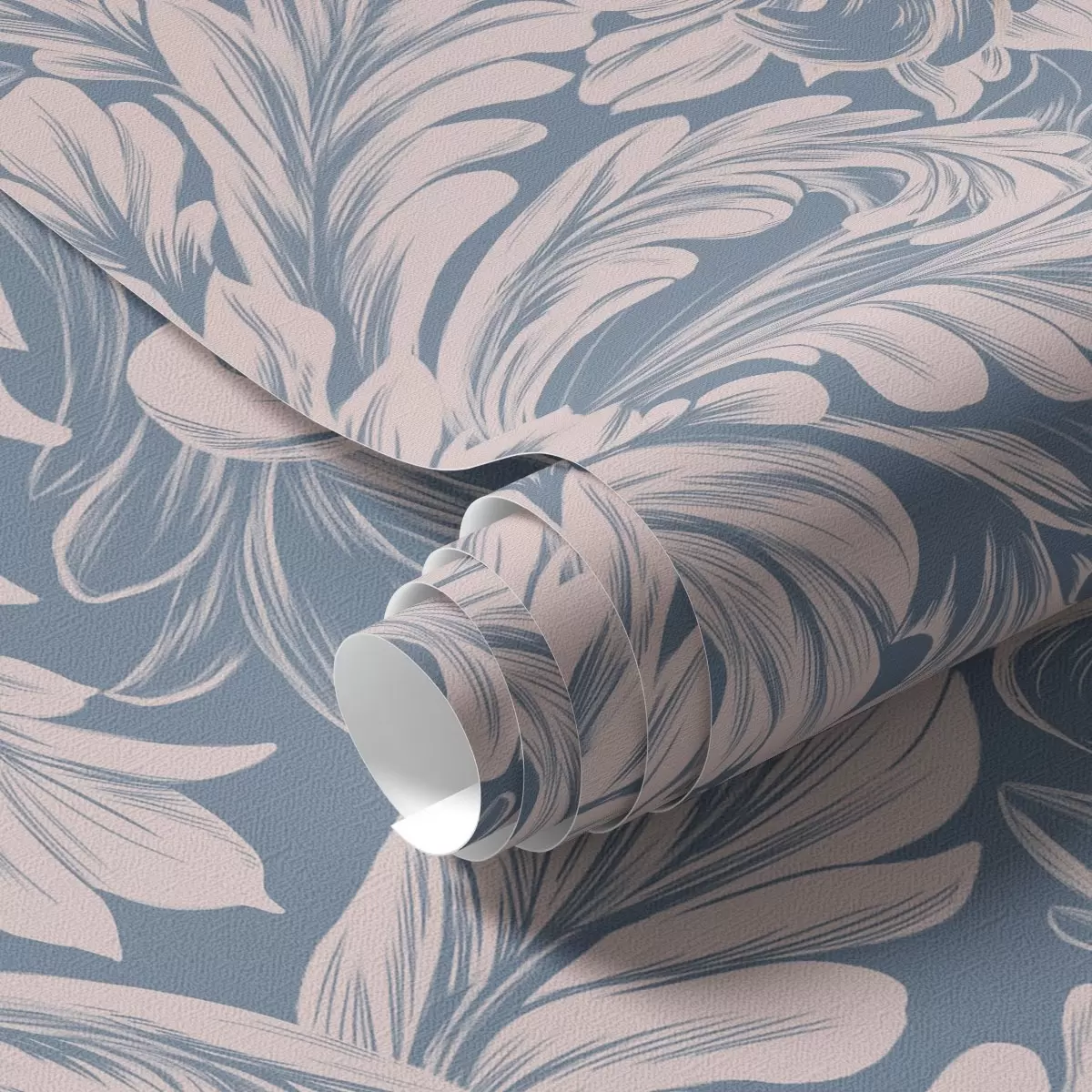 Carta da parati Riccioli di piante in tonalità crema su sfondo blu e grigio Nr. a00135v2