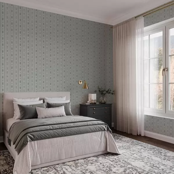 Carta da parati Motivo etnico con motivi nei colori grigio e menta Nr. a00138