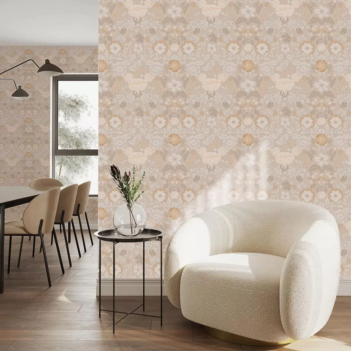 Carta da parati Stampa floreale beige in una palette di colori pastello Nr. a00145