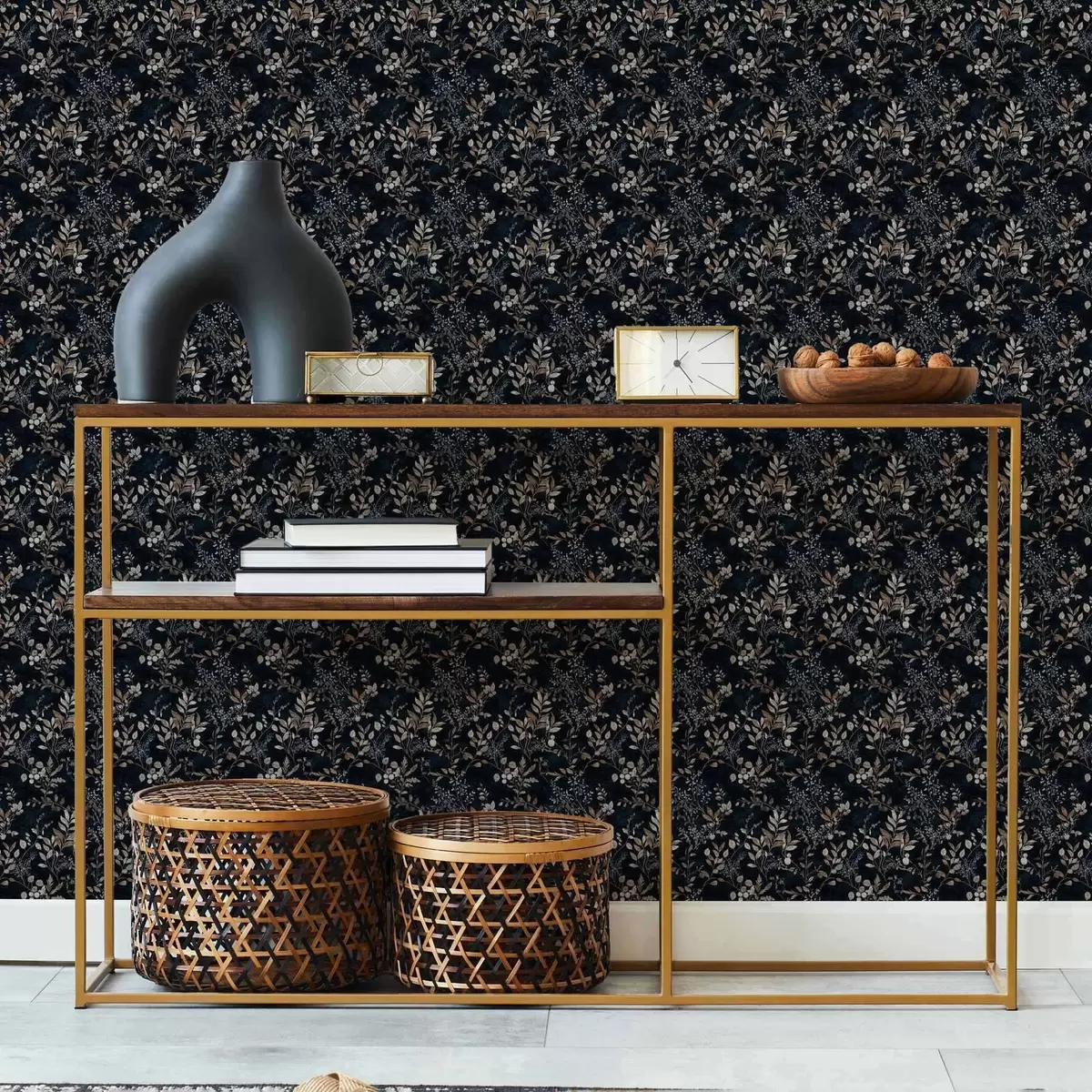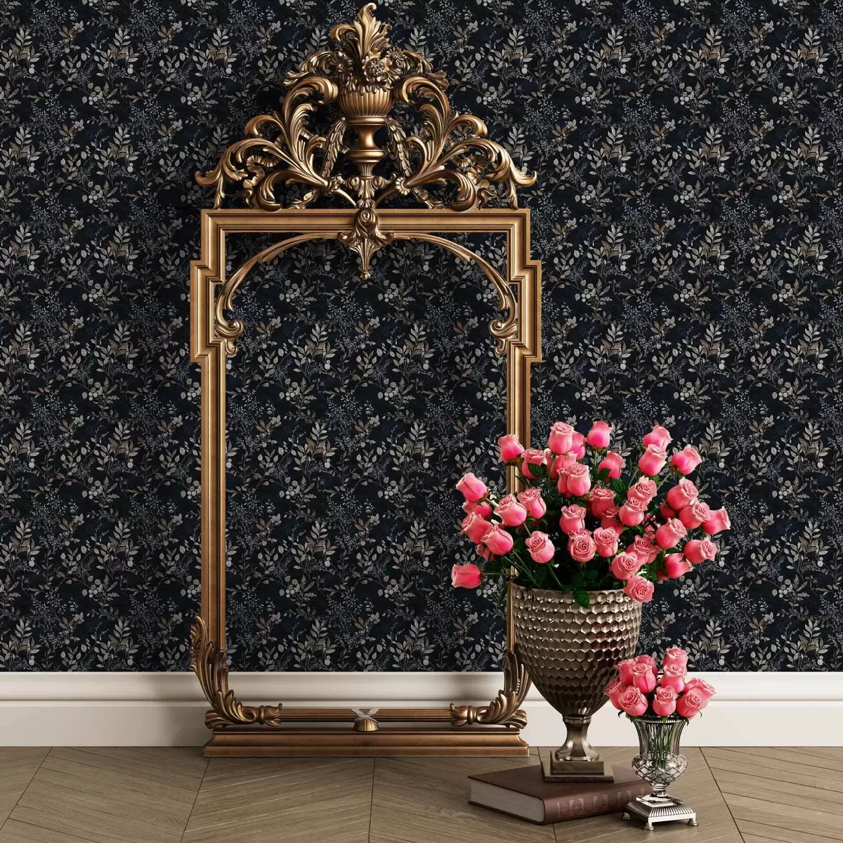 Carta da parati Stampa floreale classica in colori chiari su sfondo scuro Nr. a00166v2