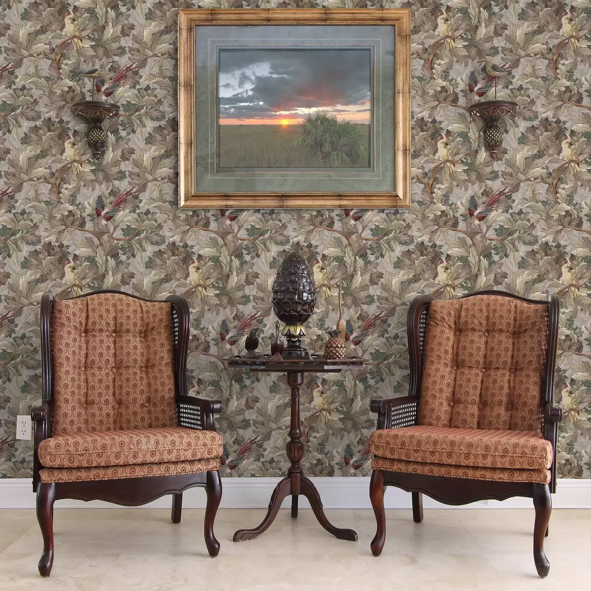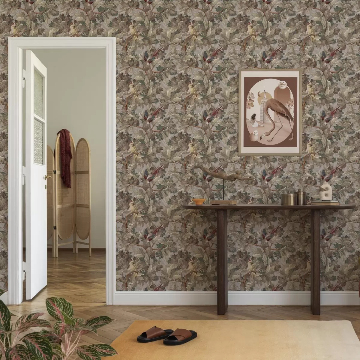 Carta da parati Uccelli su rami in stile botanico vintage Nr. a00175