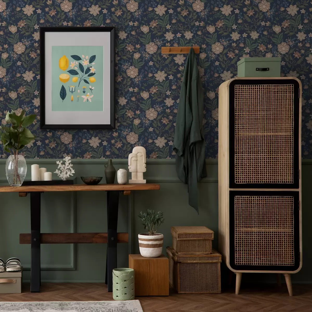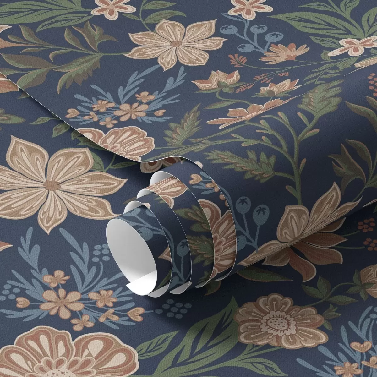 Carta da parati Motivo floreale blu scuro in stile vintage Nr. a00183