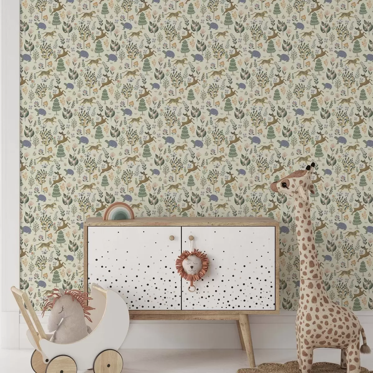 Carta da parati Illustrazione retrò con leopardi, alberi e cervi Nr. a00184