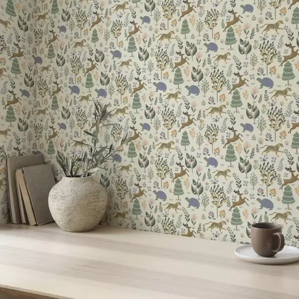 Carta da parati Illustrazione retrò con leopardi, alberi e cervi Nr. a00184
