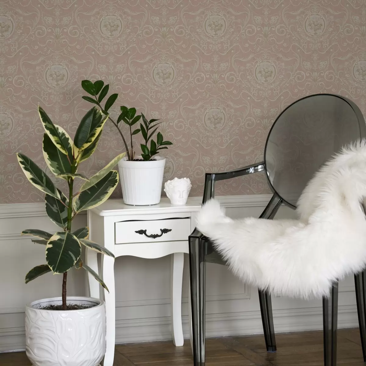 Carta da parati Motivo classico rosa con medaglioni e fiori Nr. a00185