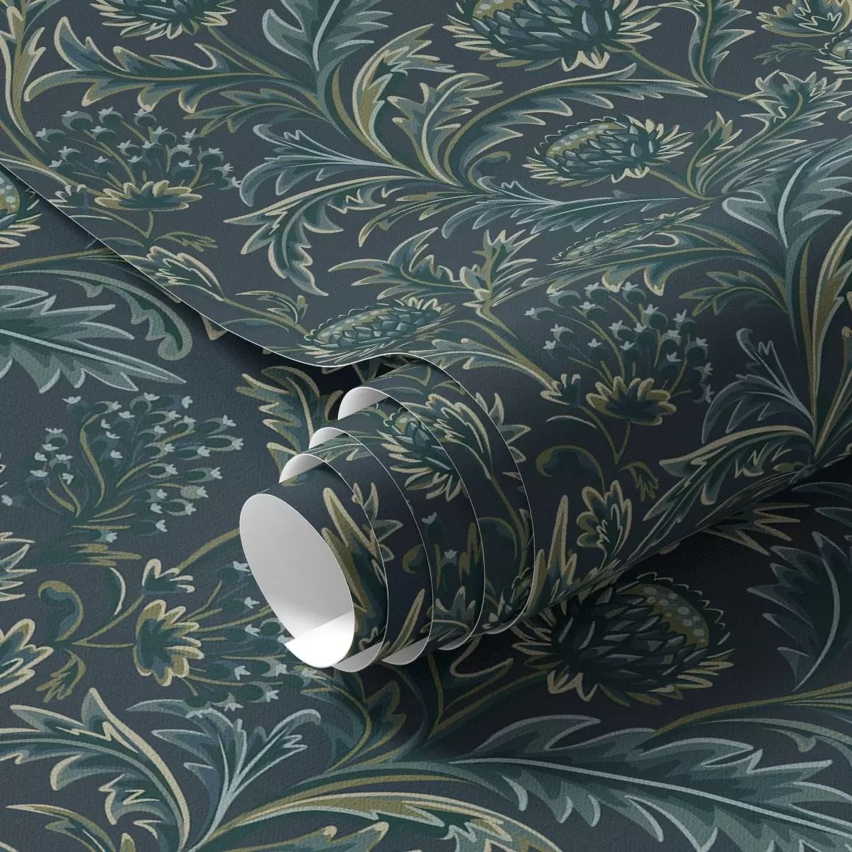Carta da parati Motivo floreale verde scuro con carciofi Nr. a00186