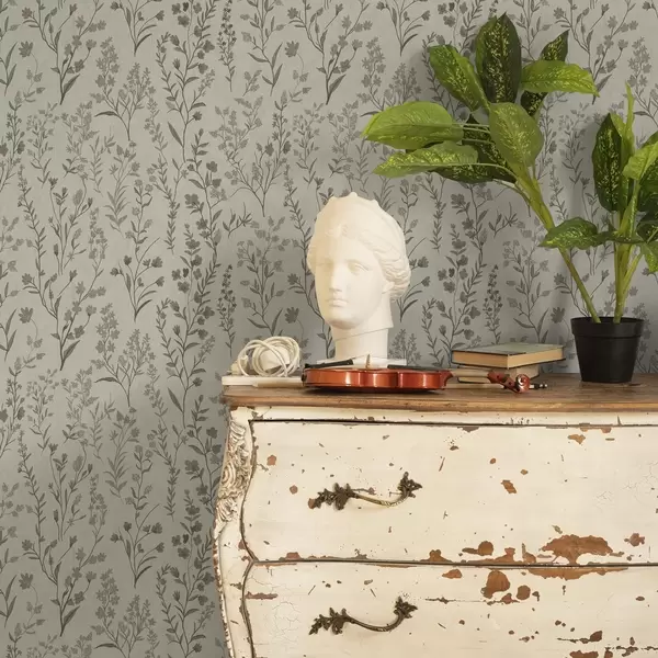 Carta da parati Erbe da prato monocromatiche in stile vintage Nr. a00192