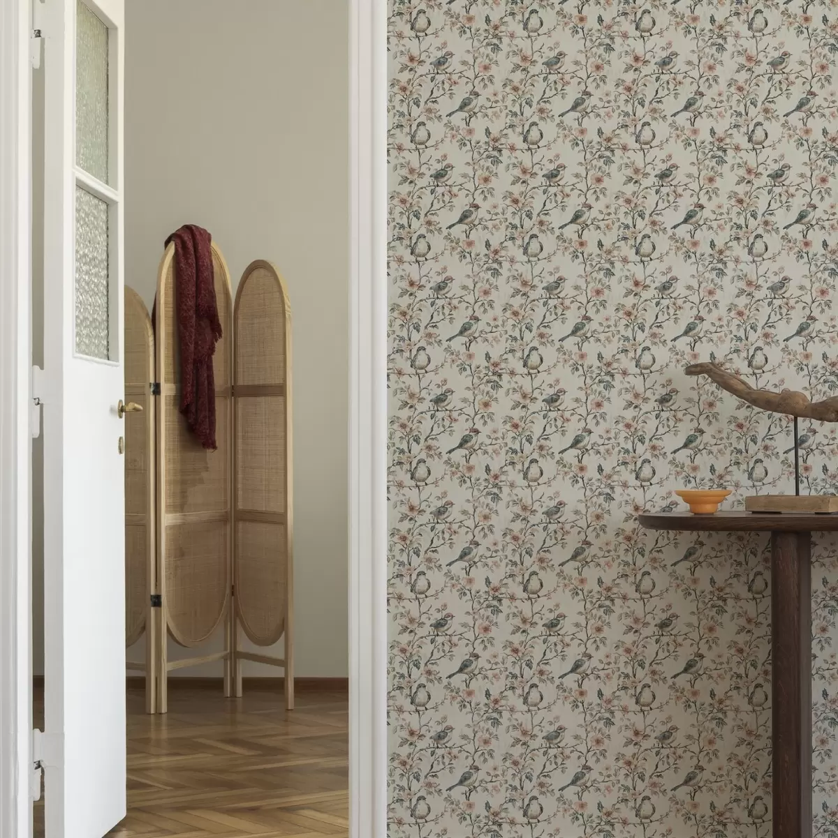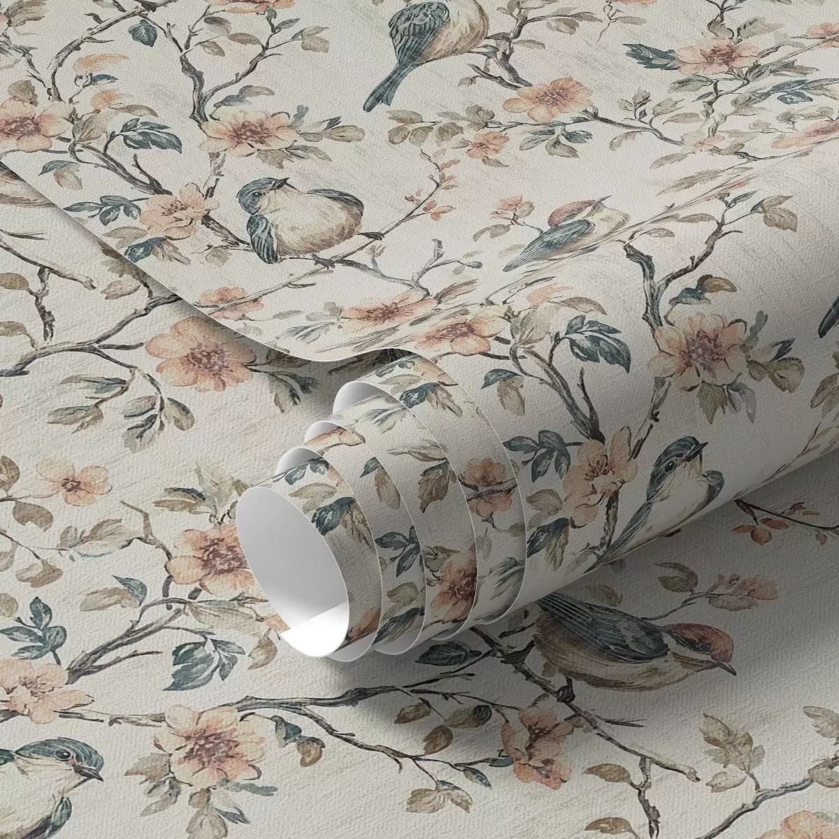 Carta da parati Uccelli su rami con fiori in stile acquerello retrò Nr. a00197