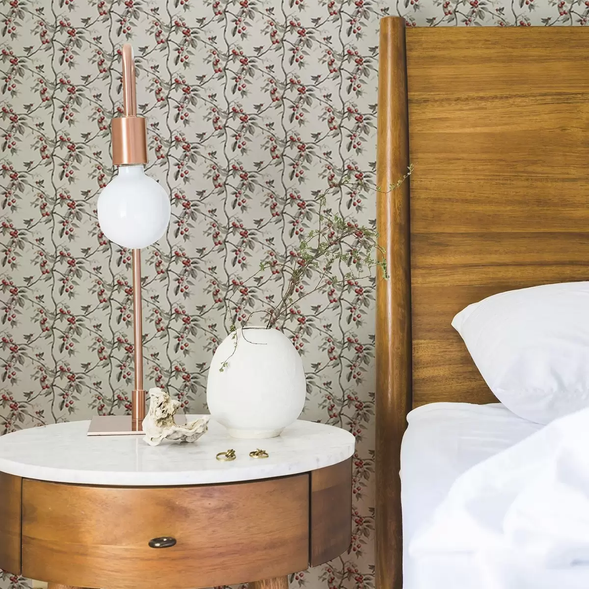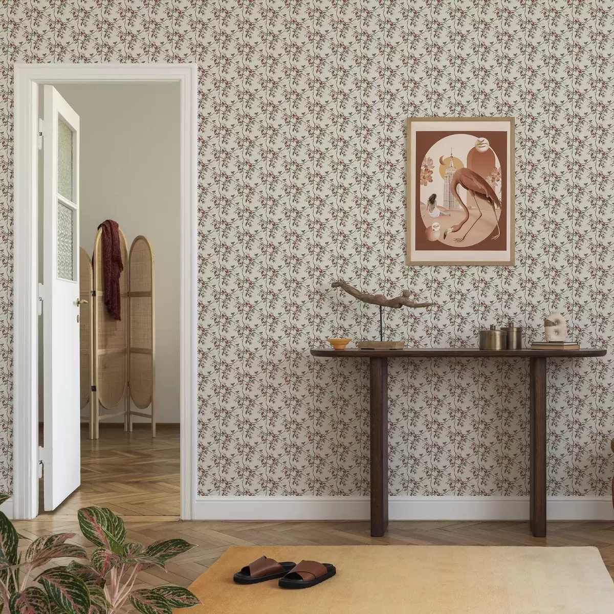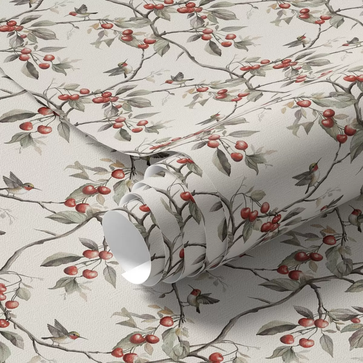 Carta da parati Uccelli tra rami di ciliegio con bacche rosse Nr. a00206