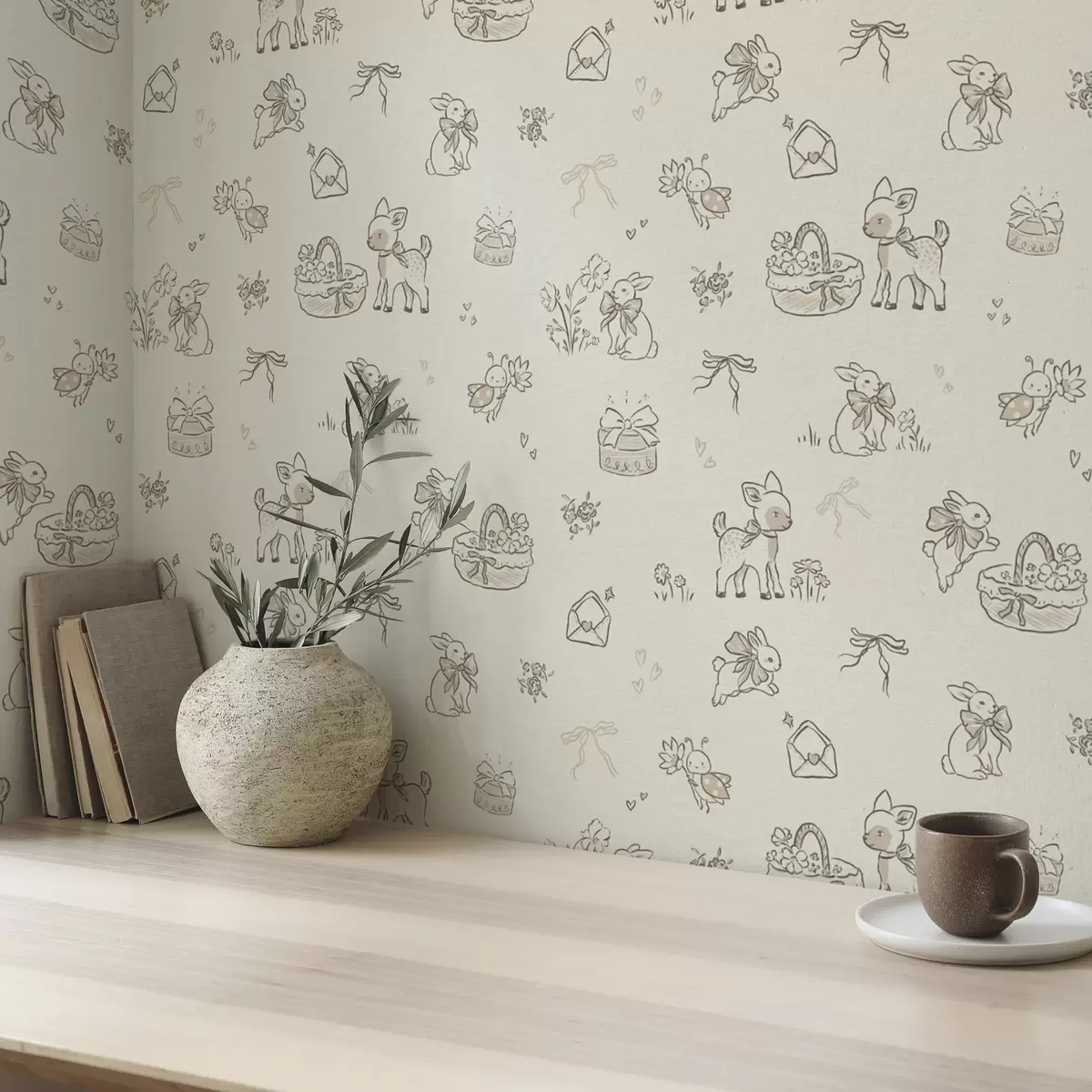 Carta da parati Simpatica scena di foresta con cervi, conigli e api Nr. a00215