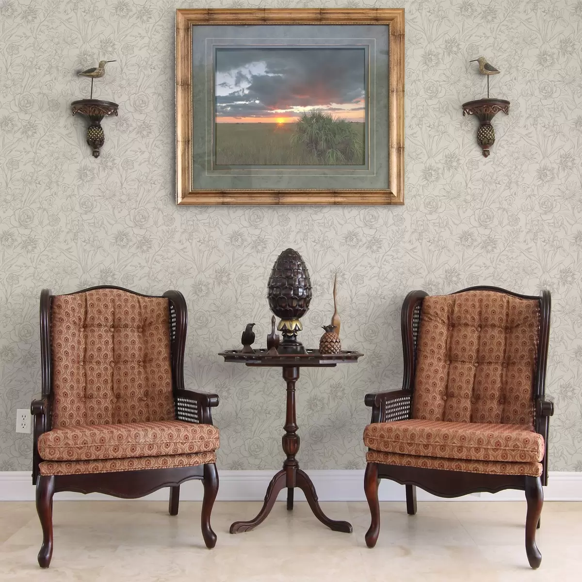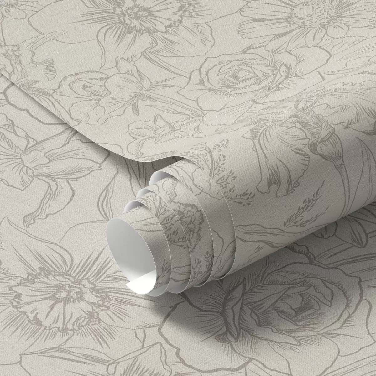 Carta da parati Fiori di contorno su sfondo crema, delicato motivo floreale Nr. a00218