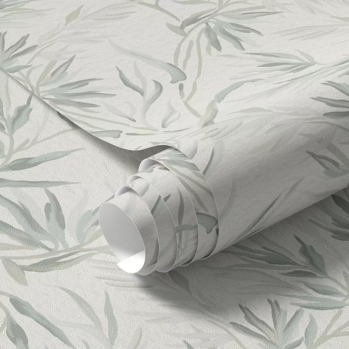 Carta da parati Foglie acquerellate in tonalità fredde, design minimalista Nr. a00225