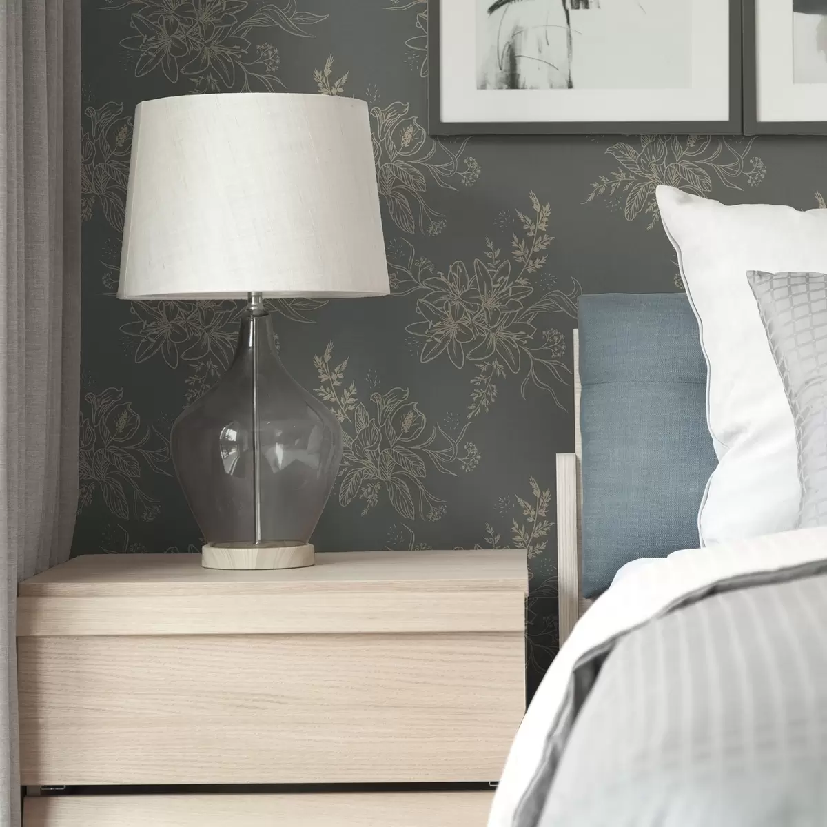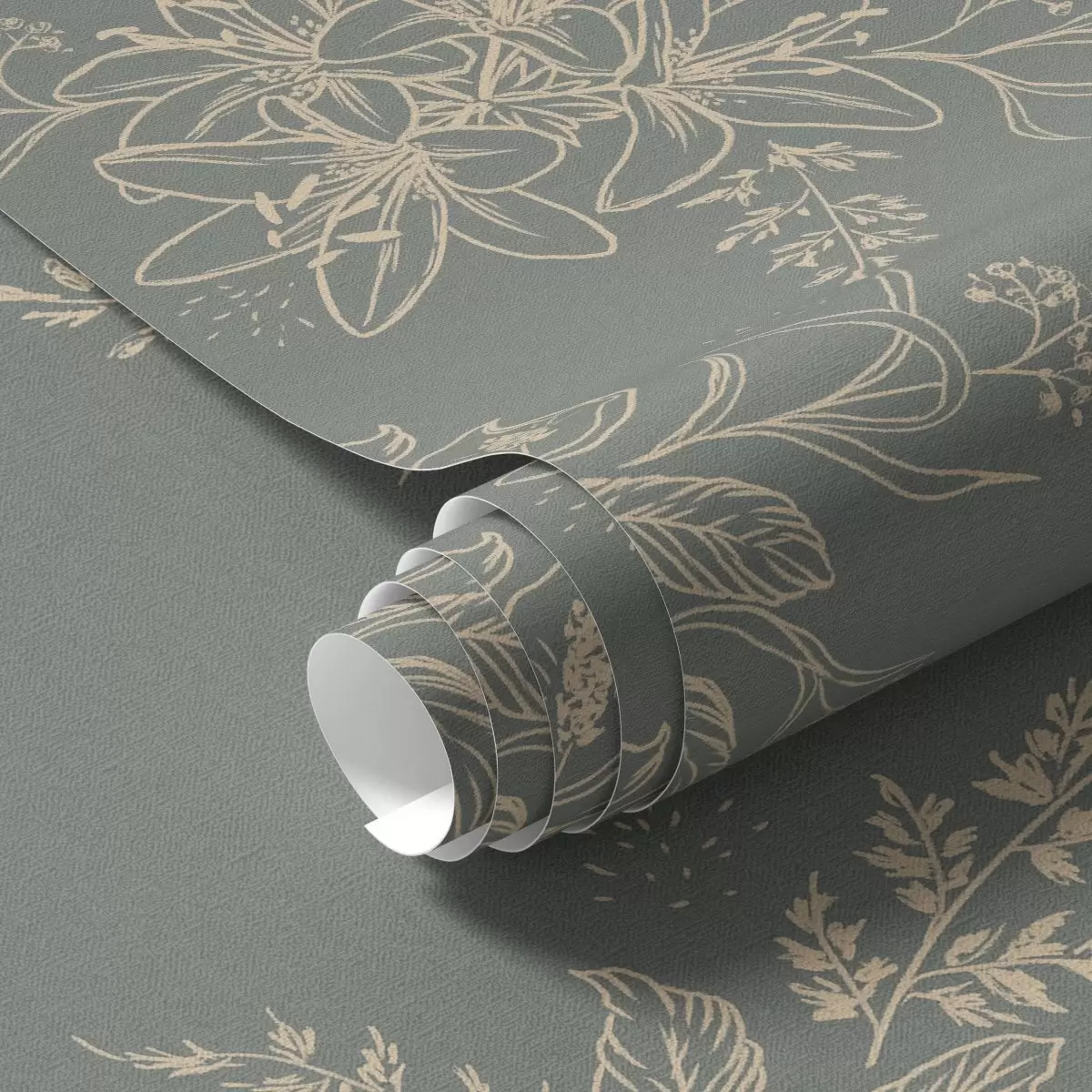 Carta da parati Fiori di contorno su sfondo grigio-blu, elegante motivo botanico Nr. a00226