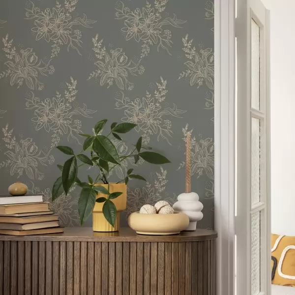 Carta da parati Fiori di contorno su sfondo grigio-blu, elegante motivo botanico Nr. a00226