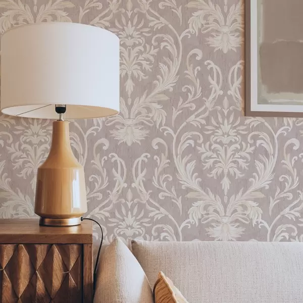 Carta da parati Damasco classico su sfondo rosa, motivo barocco Nr. a00227