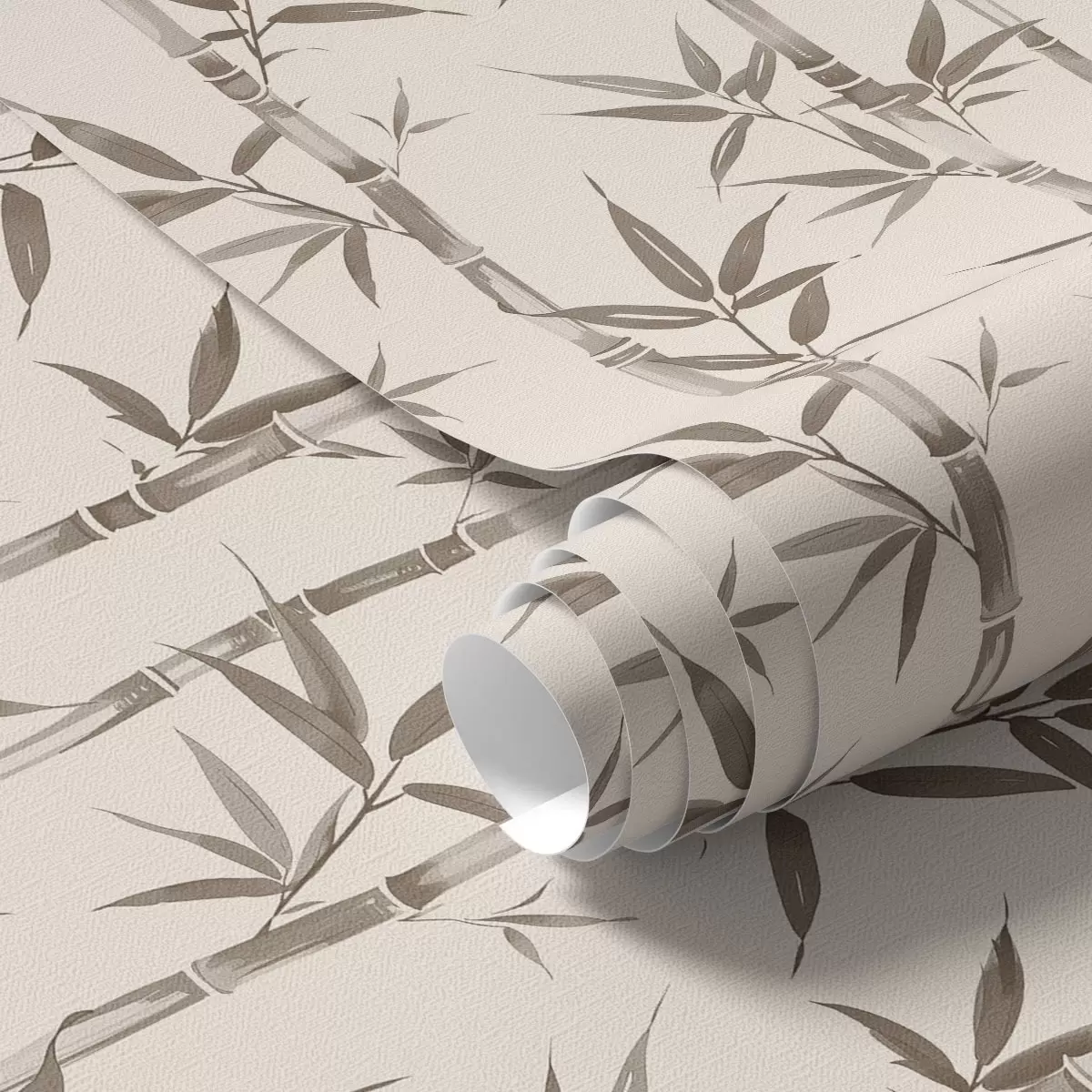 Carta da parati Motivo bambù beige con foglie in stile giapponese Nr. a00236