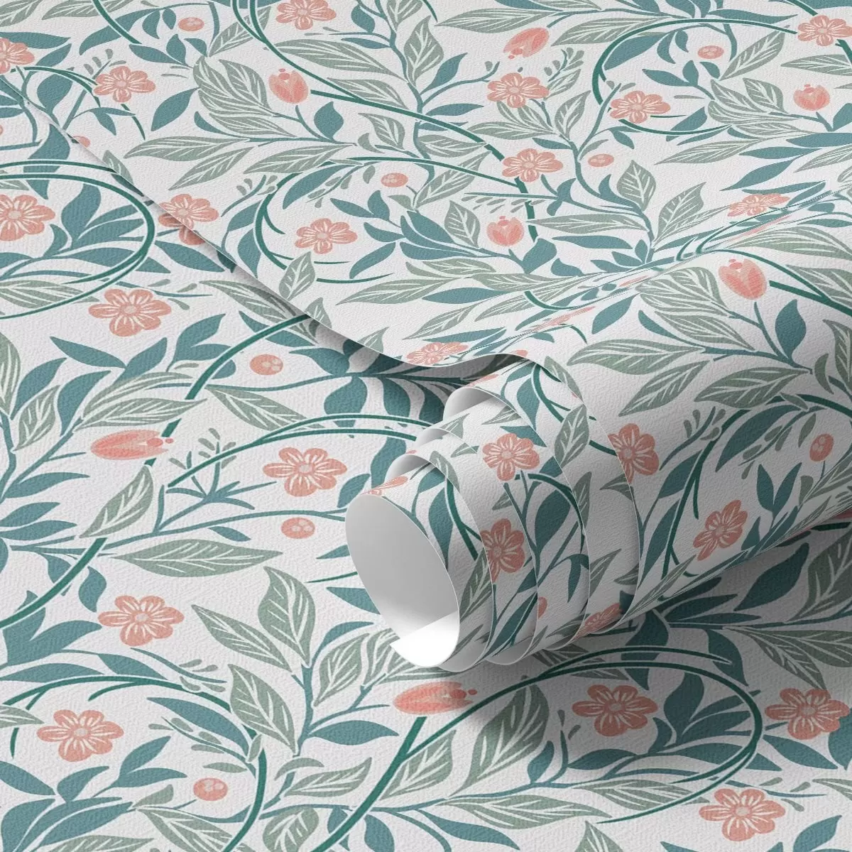 Carta da parati Motivo fresco con fiori e foglie di corallo Nr. a00247