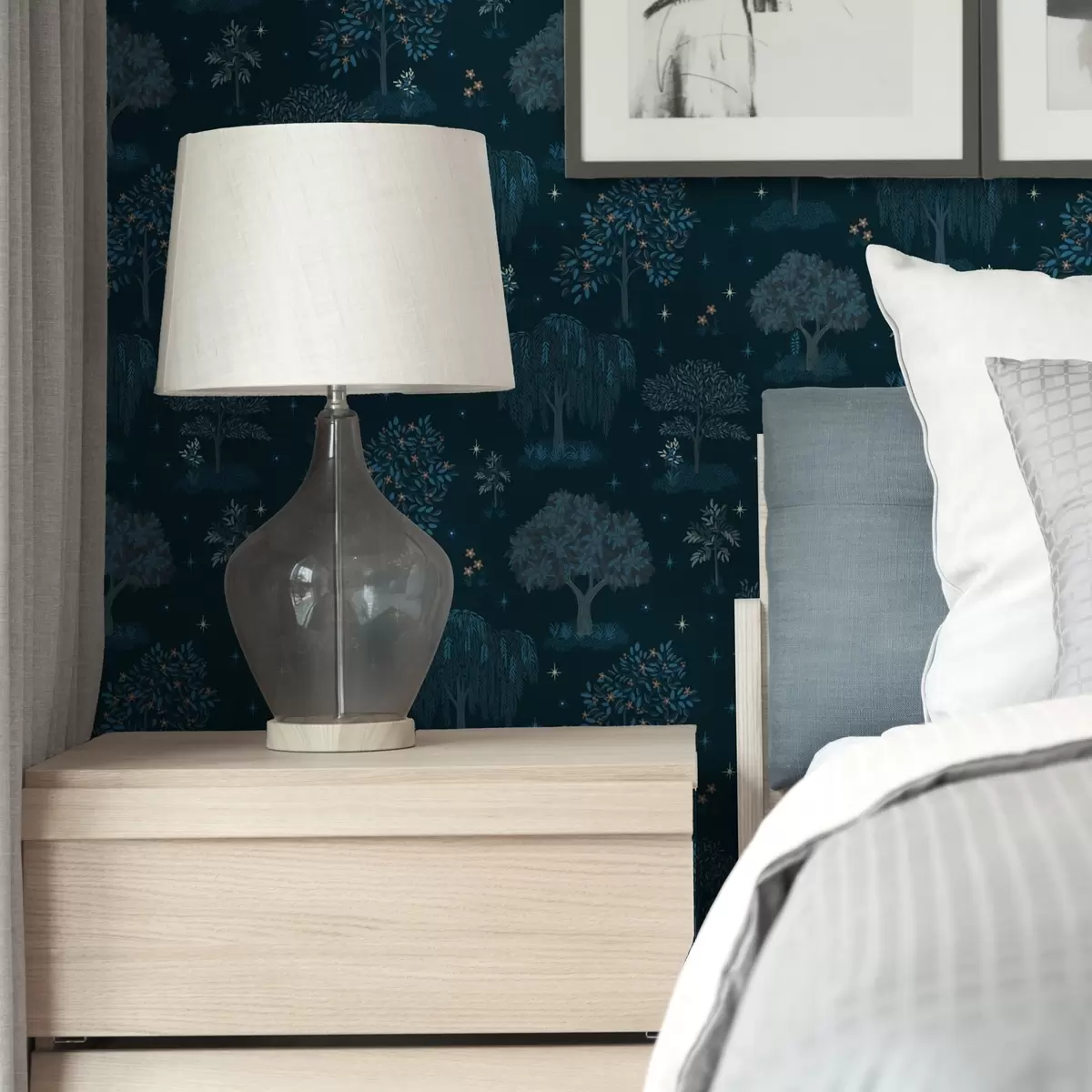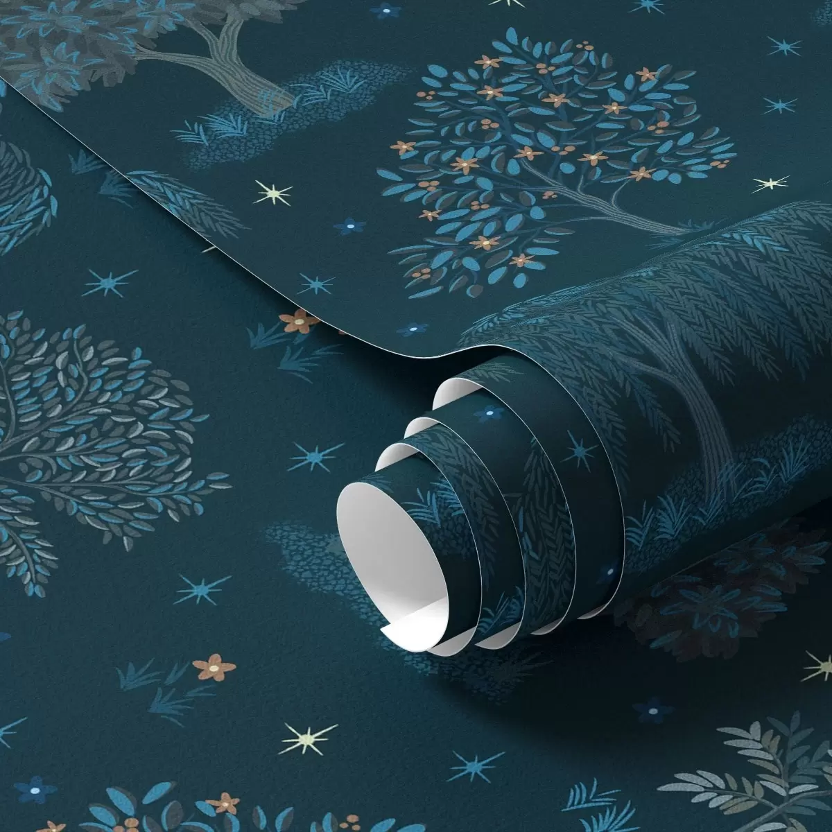 Carta da parati Bosco notturno fatato con stelle e alberi decorativi Nr. a00248