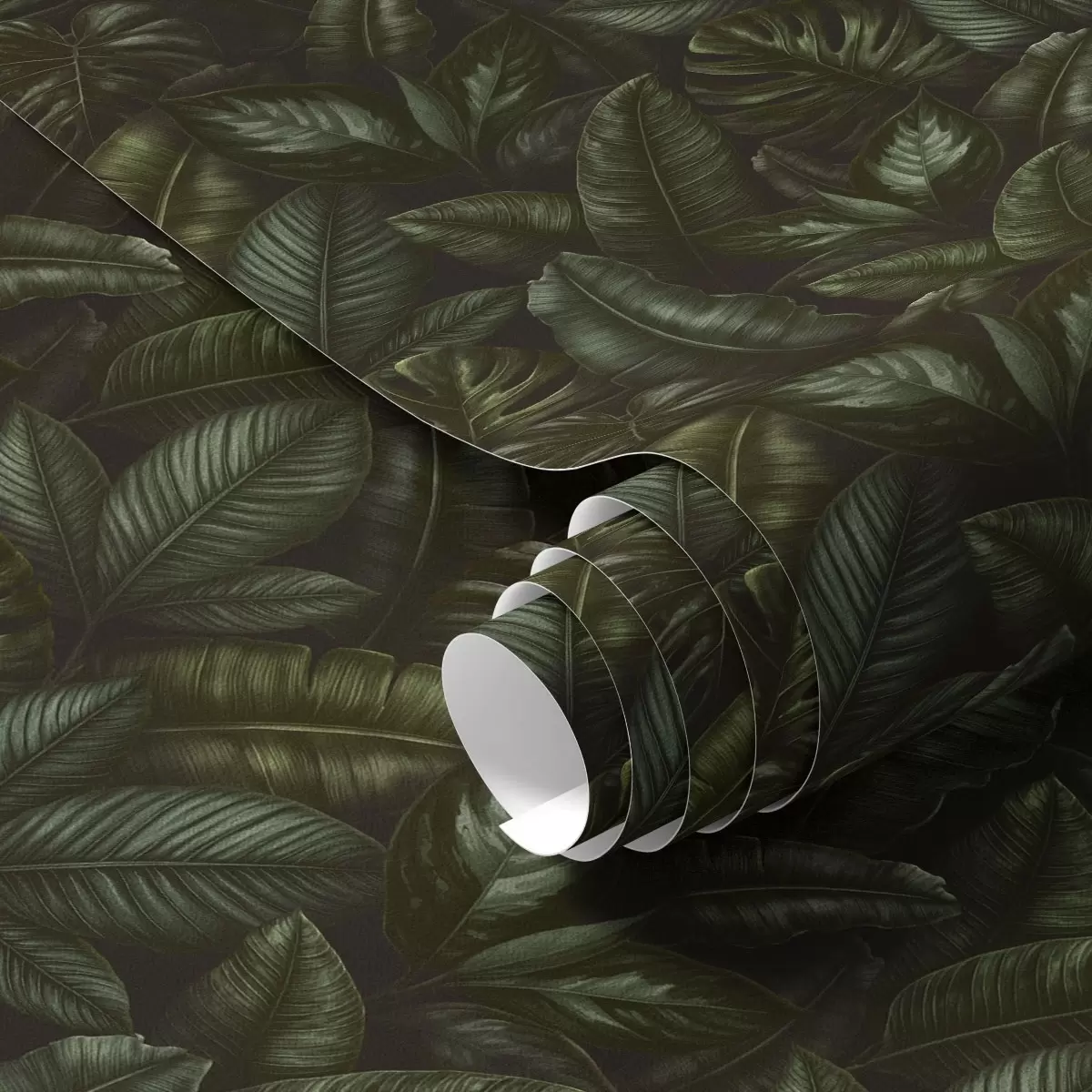 Carta da parati Foglie di giungla scura con tonalità verde intenso Nr. a00251