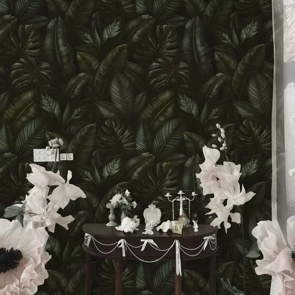 Carta da parati Foglie di giungla scura con tonalità verde intenso Nr. a00251