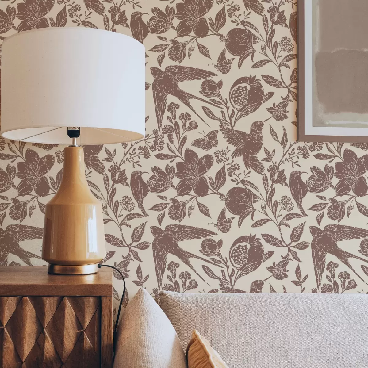 Carta da parati Uccelli, melograni e fiori in stile vintage Nr. a00263