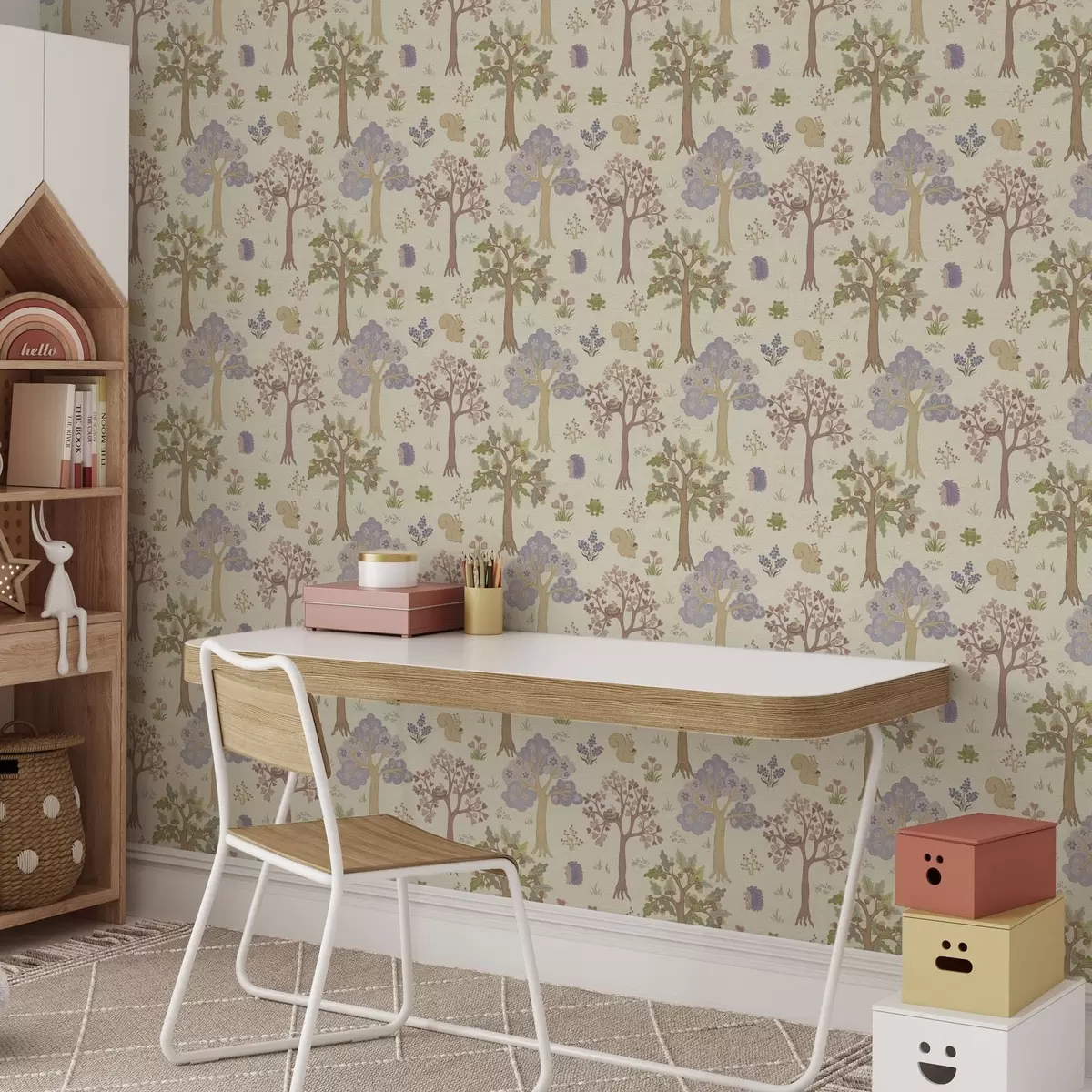 Carta da parati Bosco fatato con animali in stile infantile Nr. a00264