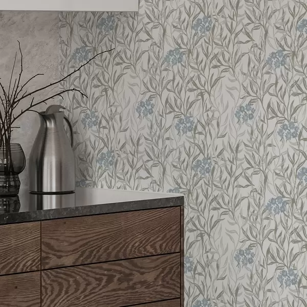 Carta da parati Stampa botanica leggera con fiori blu Nr. a00268