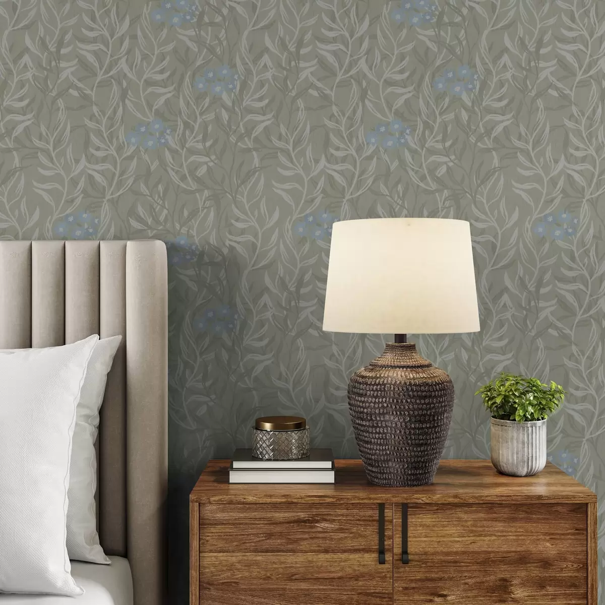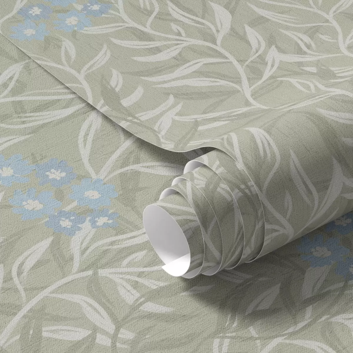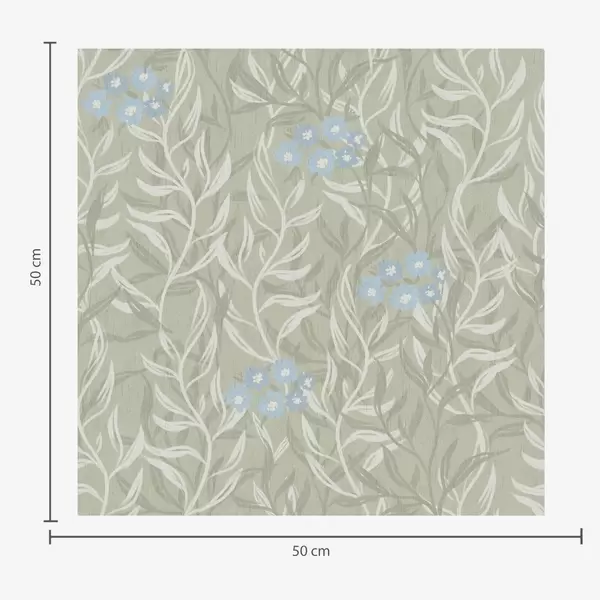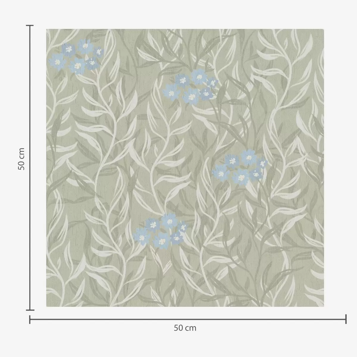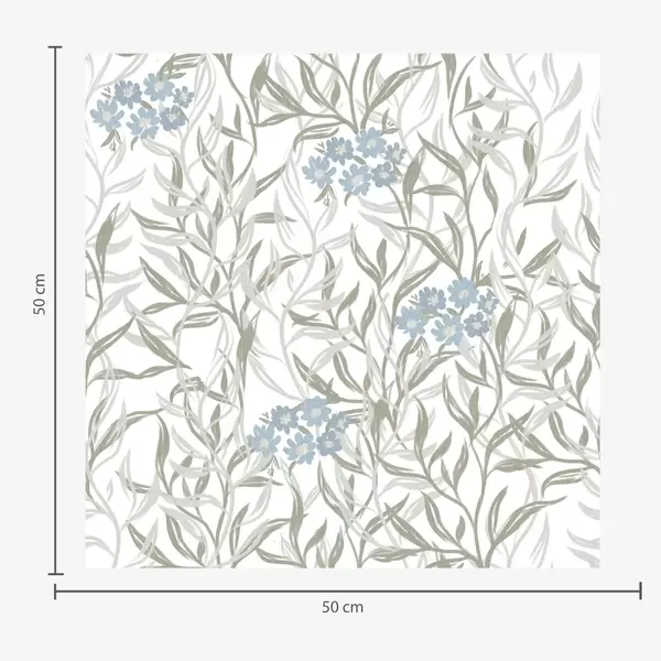 Carta da parati Sfondo verde con rami bianchi e fiori blu Nr. a00268v1
