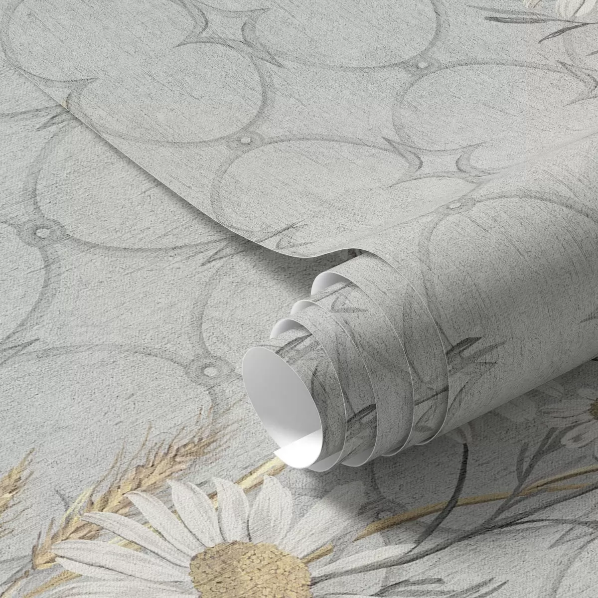 Carta da parati Margherite su sfondo grigio con motivo geometrico Nr. a00269