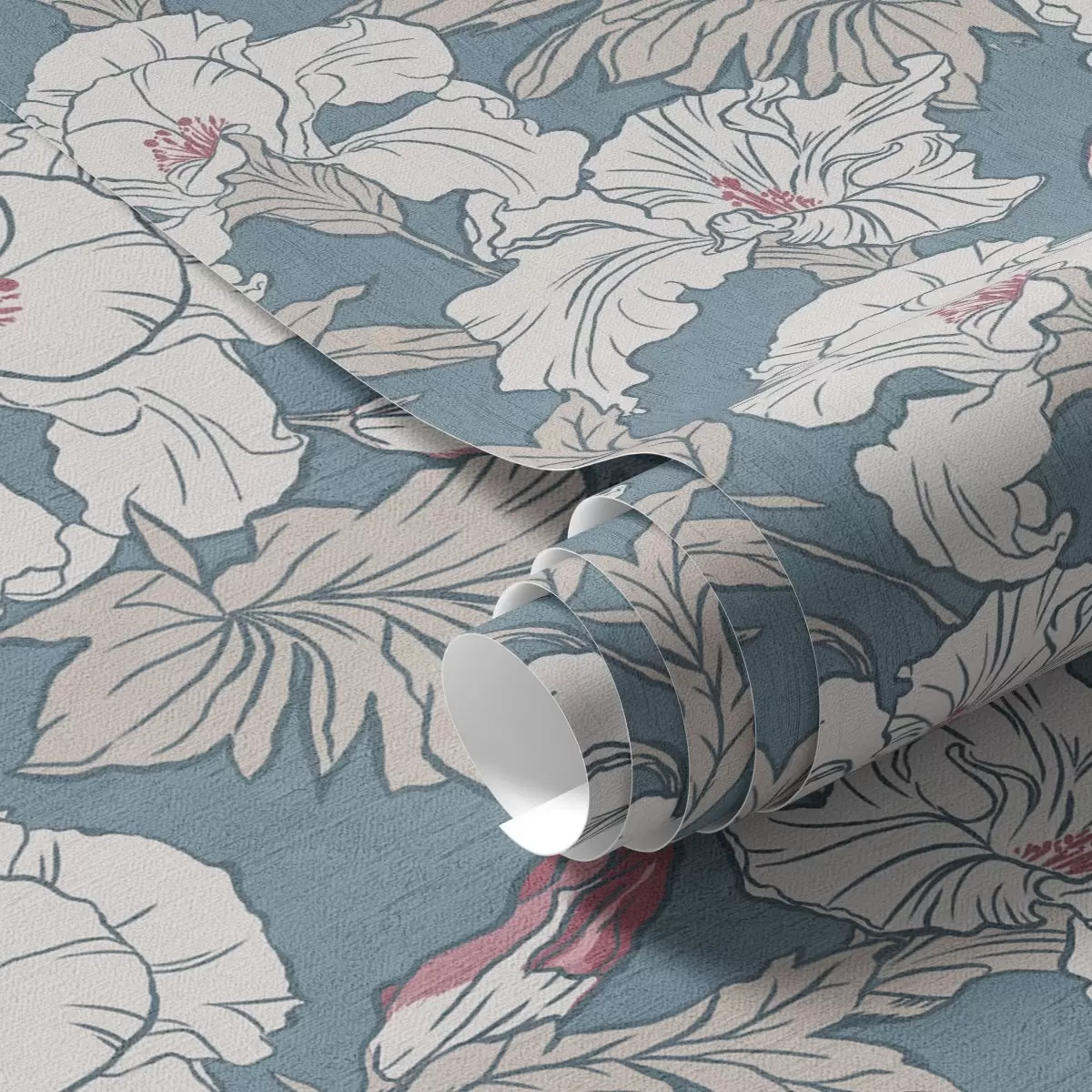 Carta da parati Ibisco bianco su sfondo blu con motivo di contorno Nr. a00272v1