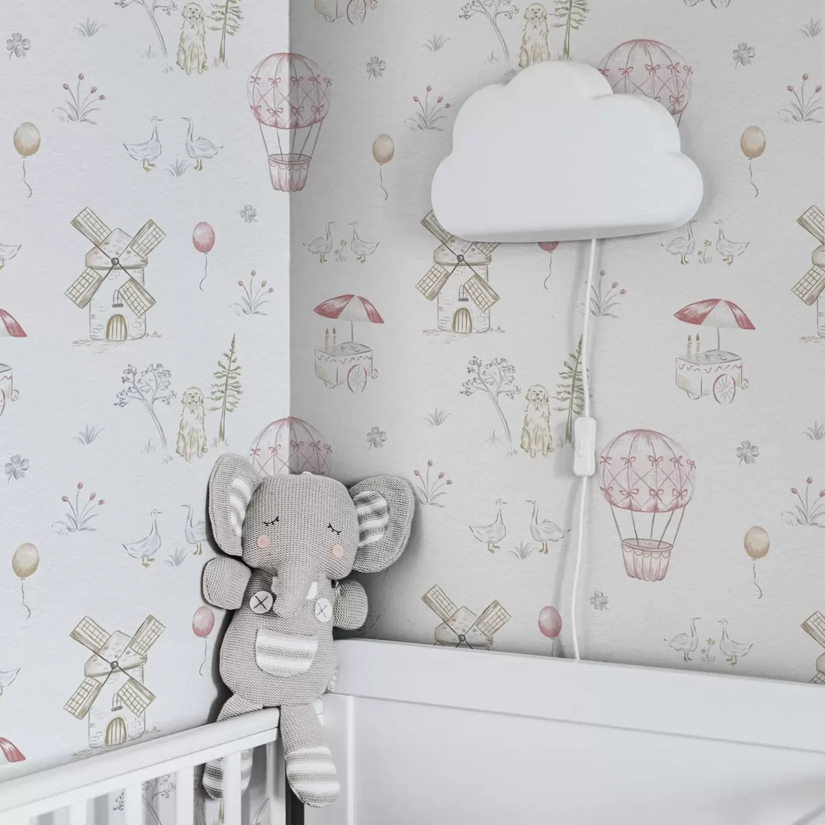 Carta da parati Illustrazioni per bambini: Cane, anatre, palle, mulino Nr. a00278