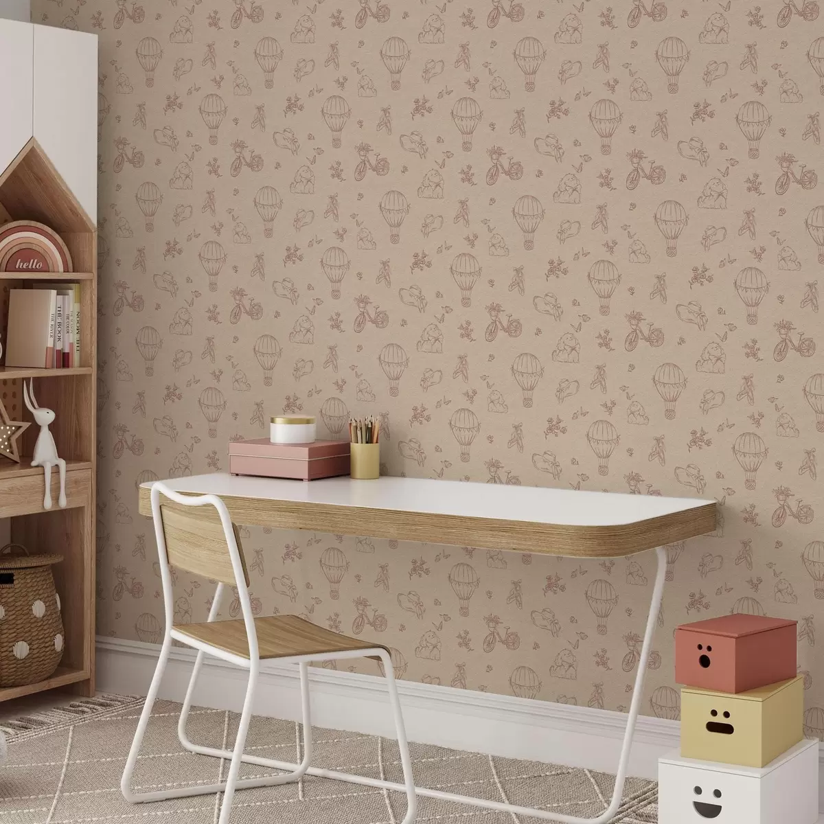 Carta da parati Motivo rosa baby con cane, fiori e aria Nr. a00279