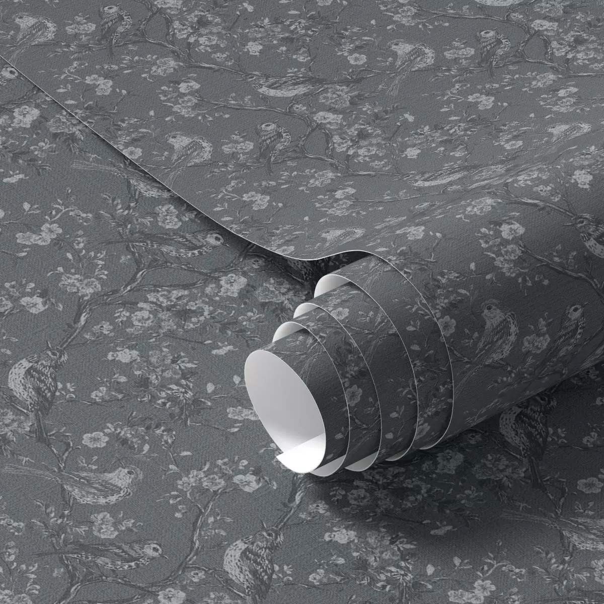 Carta da parati Motivo scuro con uccelli e fiori, stile classico Nr. a00281