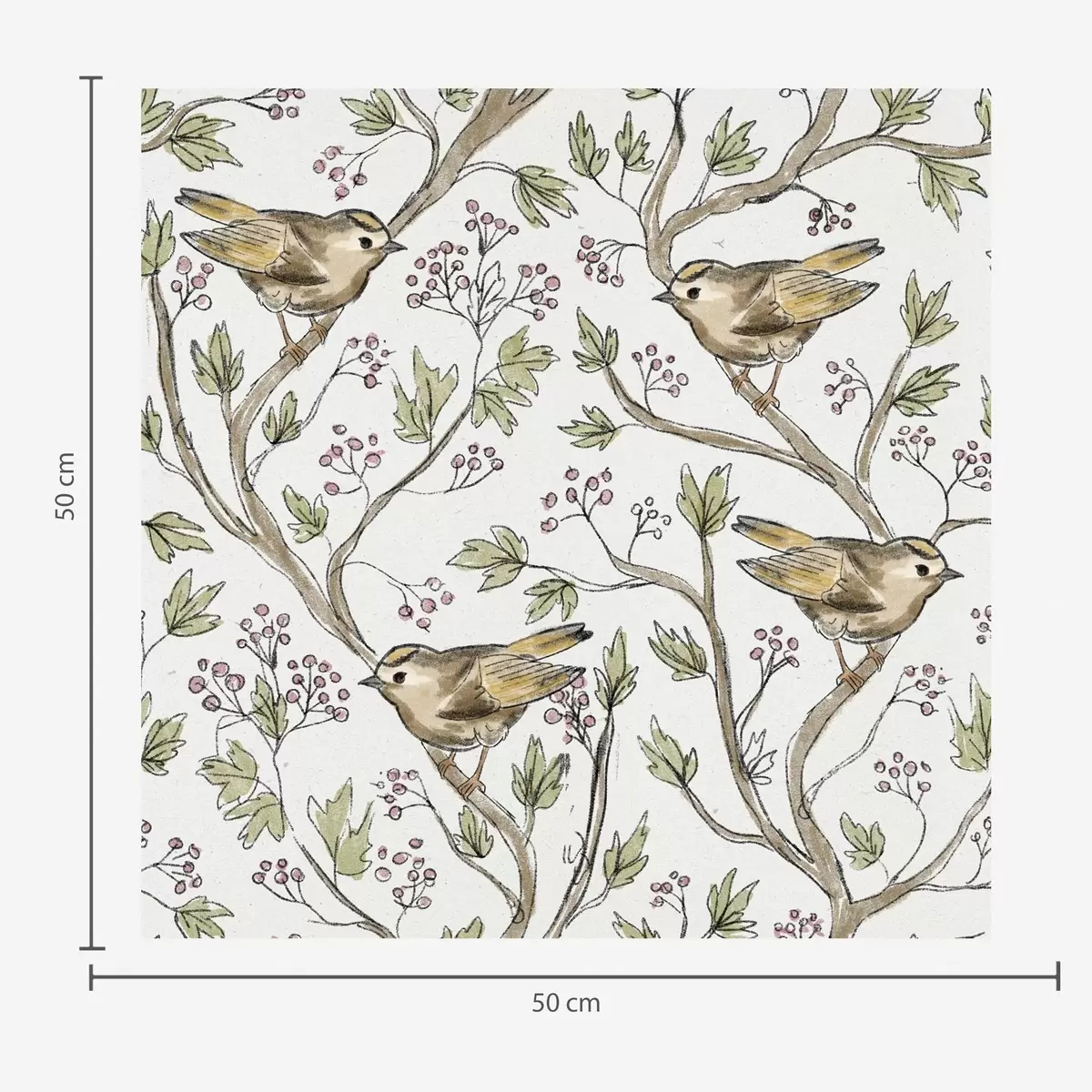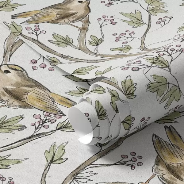 Carta da parati Uccelli su rami con foglie e bacche su sfondo bianco Nr. a00283