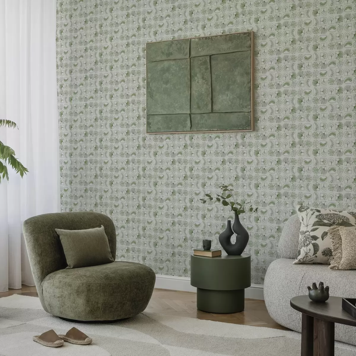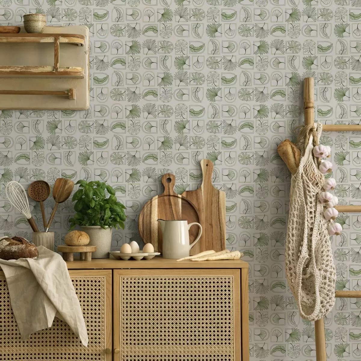 Carta da parati Motivo grafico con foglie verdi a quadretti Nr. a00287