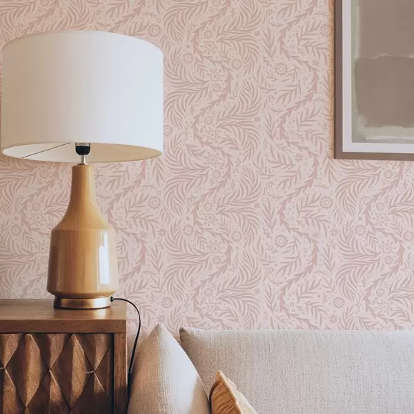 Carta da parati Elementi floreali rosa pallido su sfondo rosa Nr. a00290