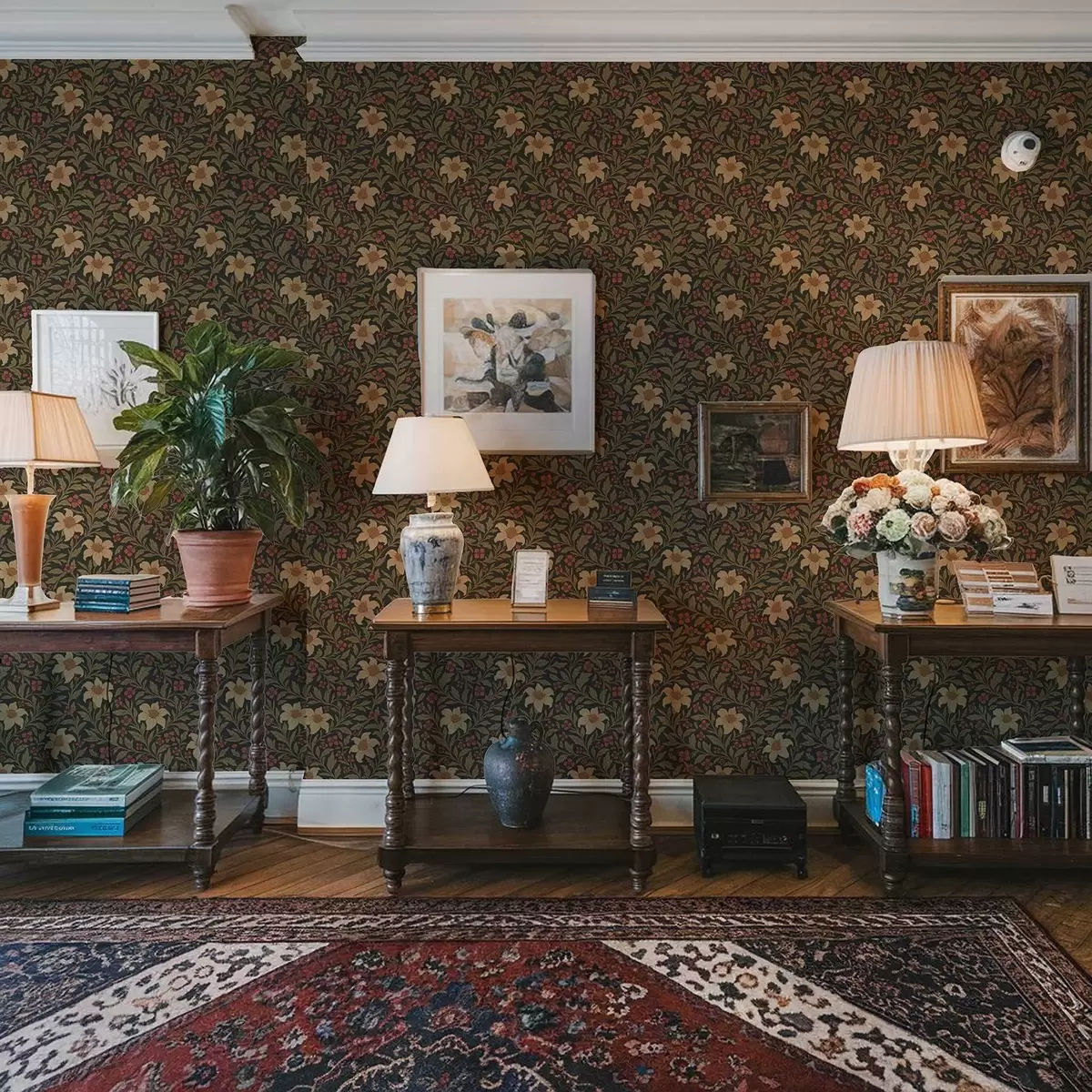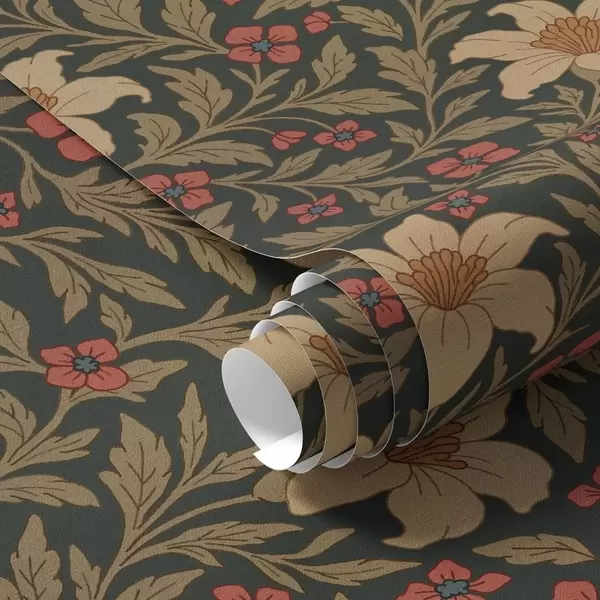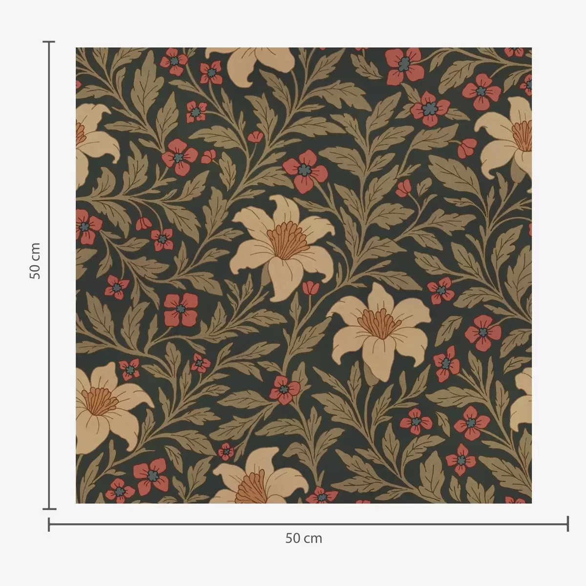 Carta da parati Sfondo scuro con fiori gialli e rossi in stile Art Nouveau Nr. a00293