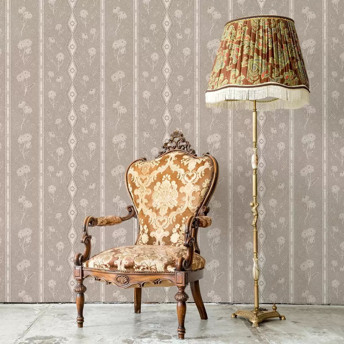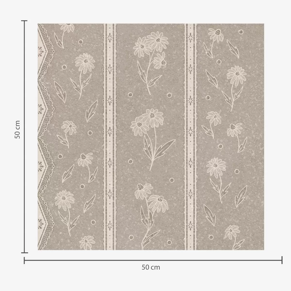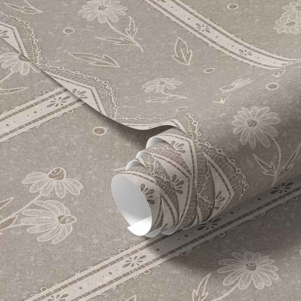 Carta da parati Strisce con margherite e pizzo su sfondo grigio-beige Nr. a00295