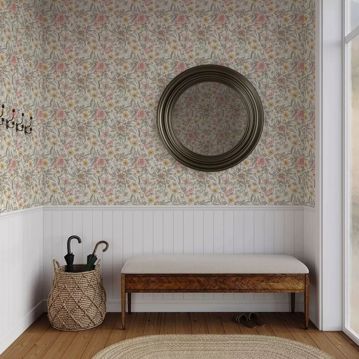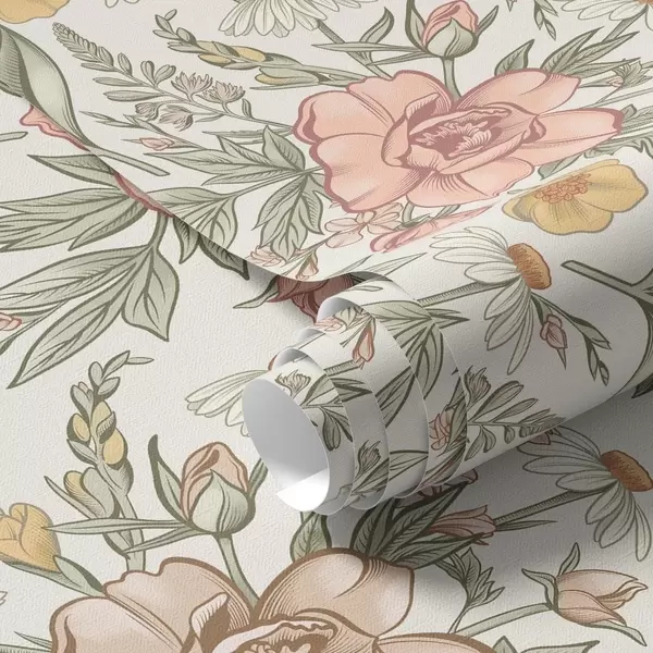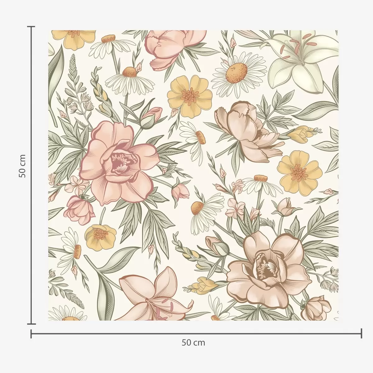 Carta da parati Margherite, peonie, gigli e foglie dai colori delicati Nr. a00299