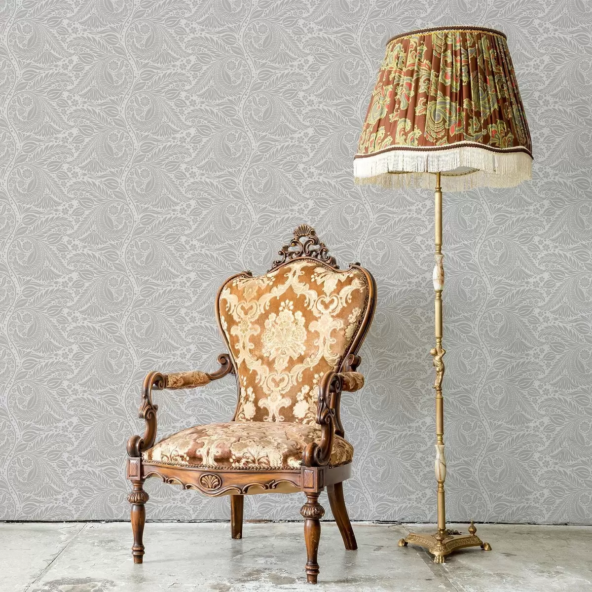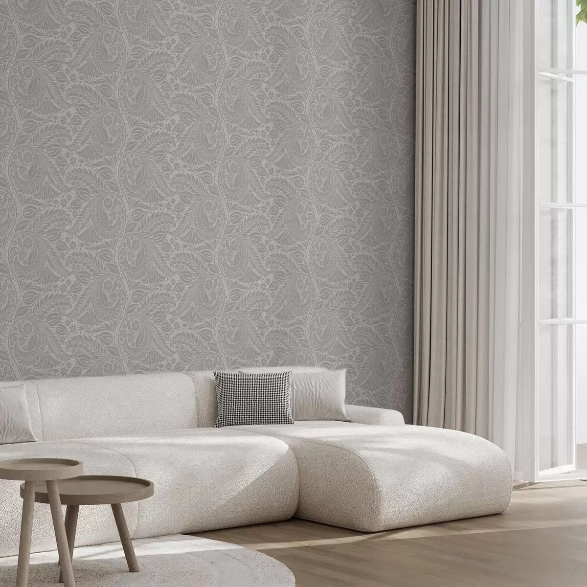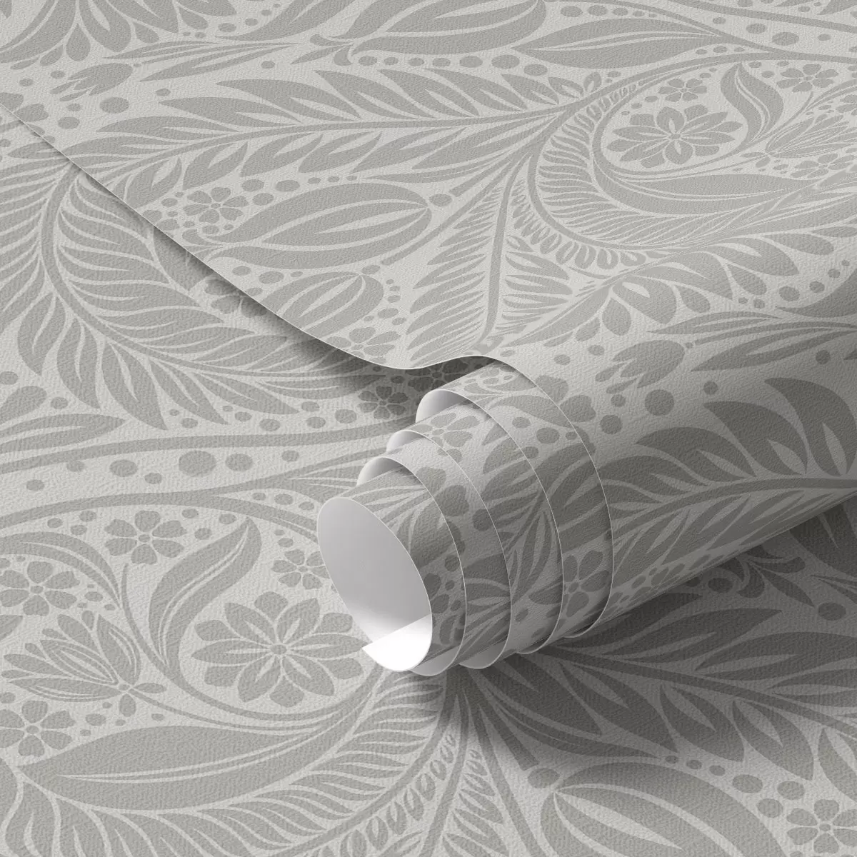 Carta da parati Stilizzazione folcloristica grigia con foglie e fiori Nr. a00301